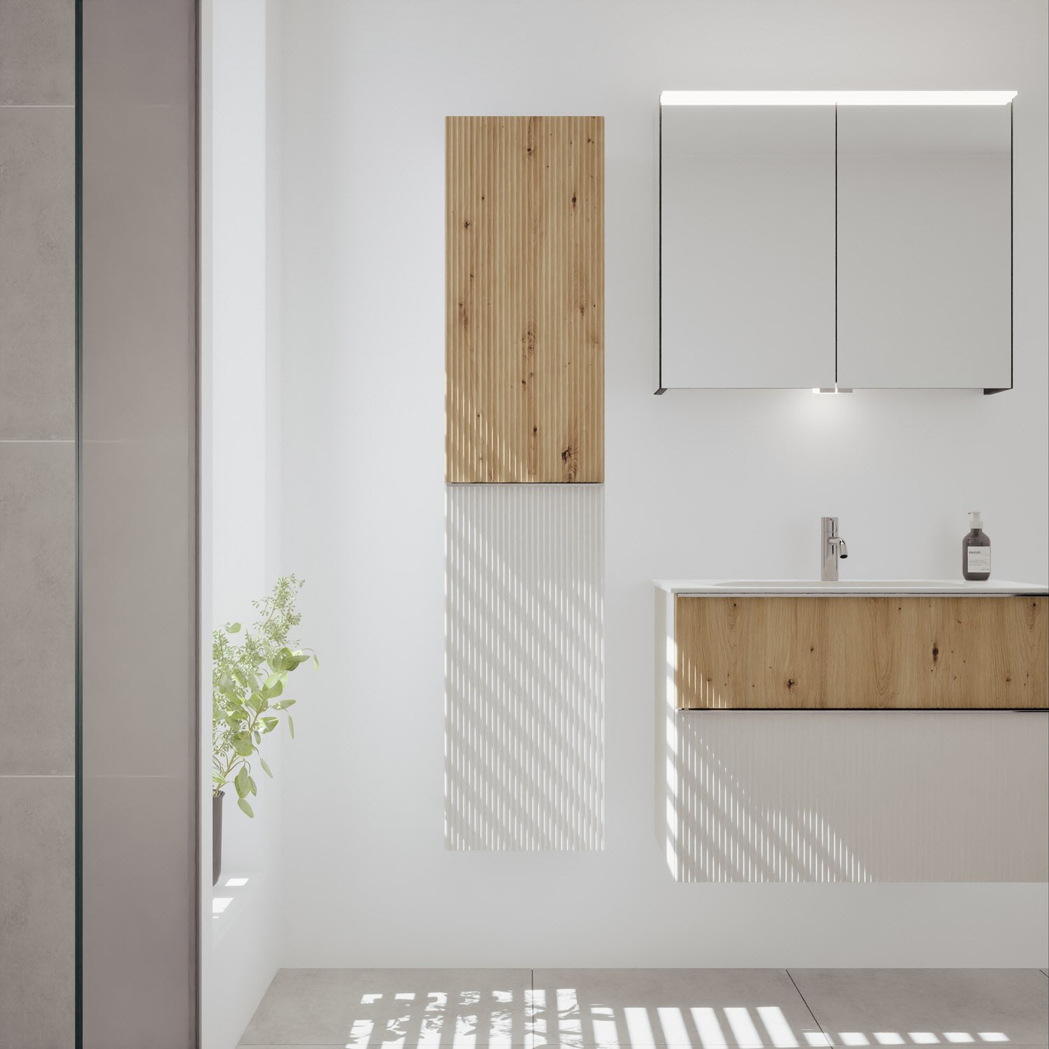 - 1 Tür oben mit vertikaler Struktur inkl. Tip-On-Technik