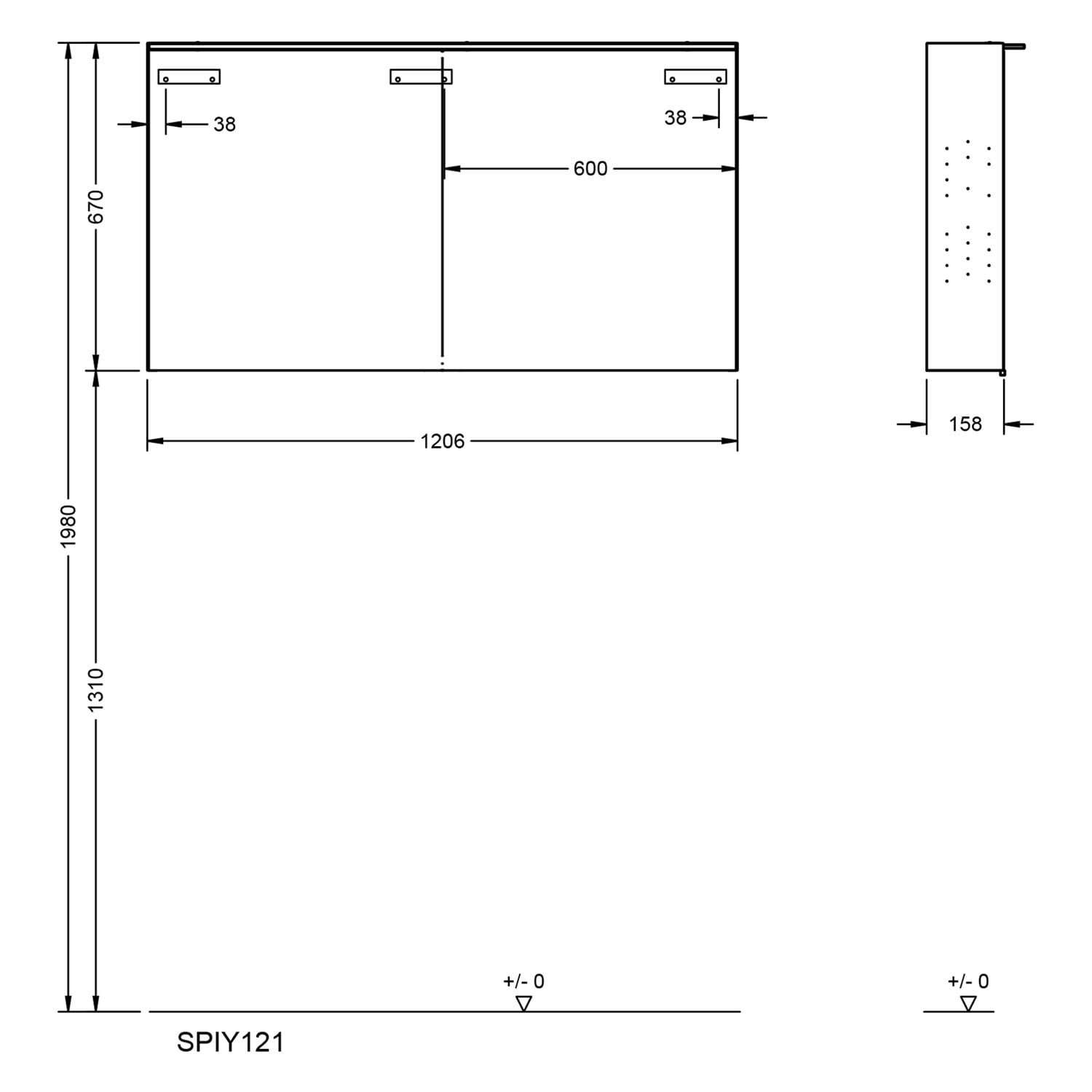 burgbad Fiumo 2.0 Spiegelschrank 120,6 cm mit LED-Aufsatzleuchte, 2 Spiegeltüren