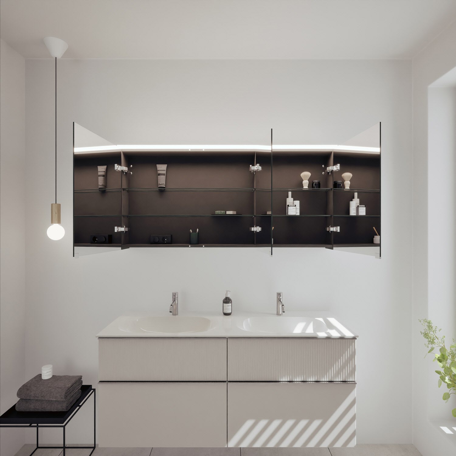 burgbad Fiumo 2.0 Spiegelschrank 140,6 cm mit LED-Aufsatzleuchte, 3 Spiegeltüren