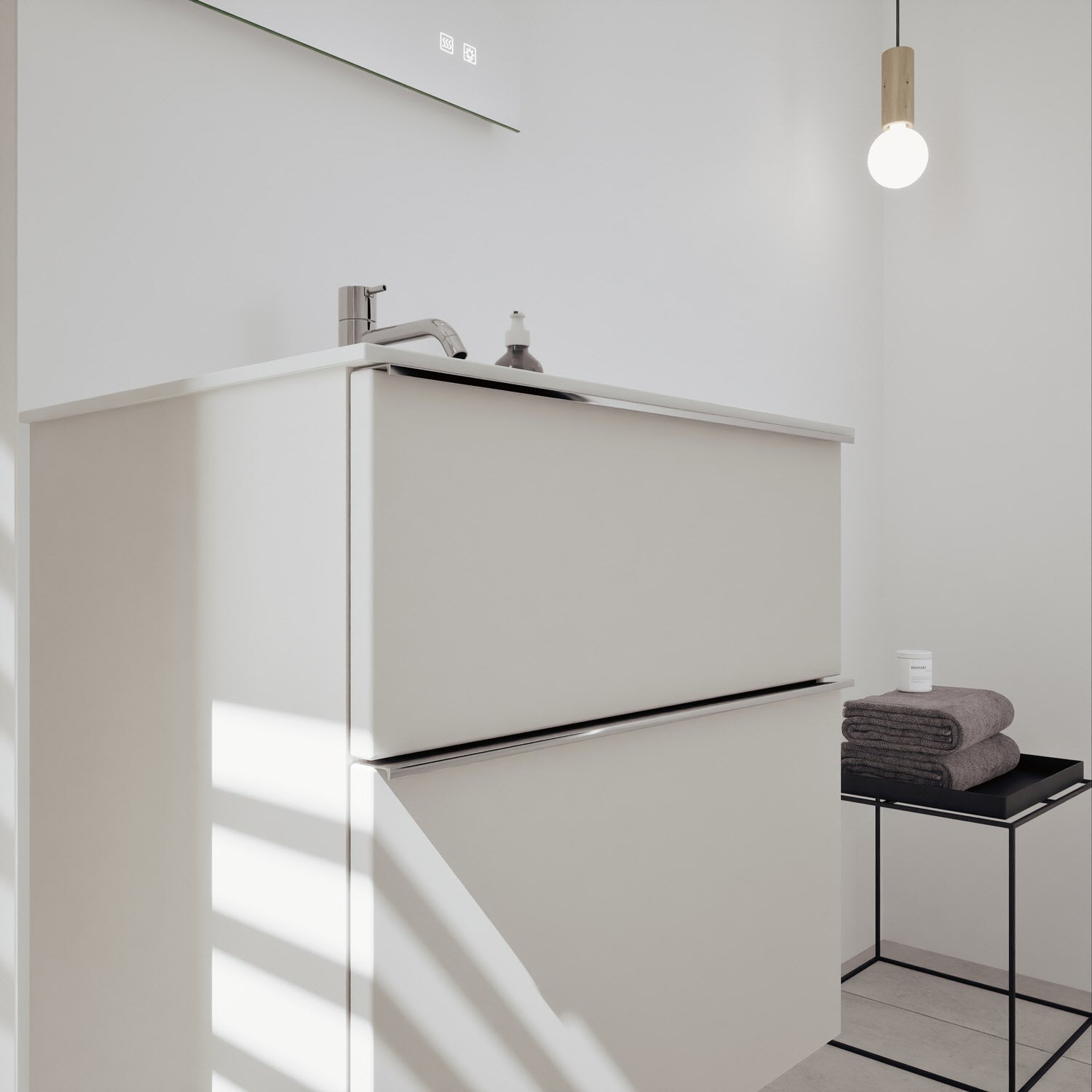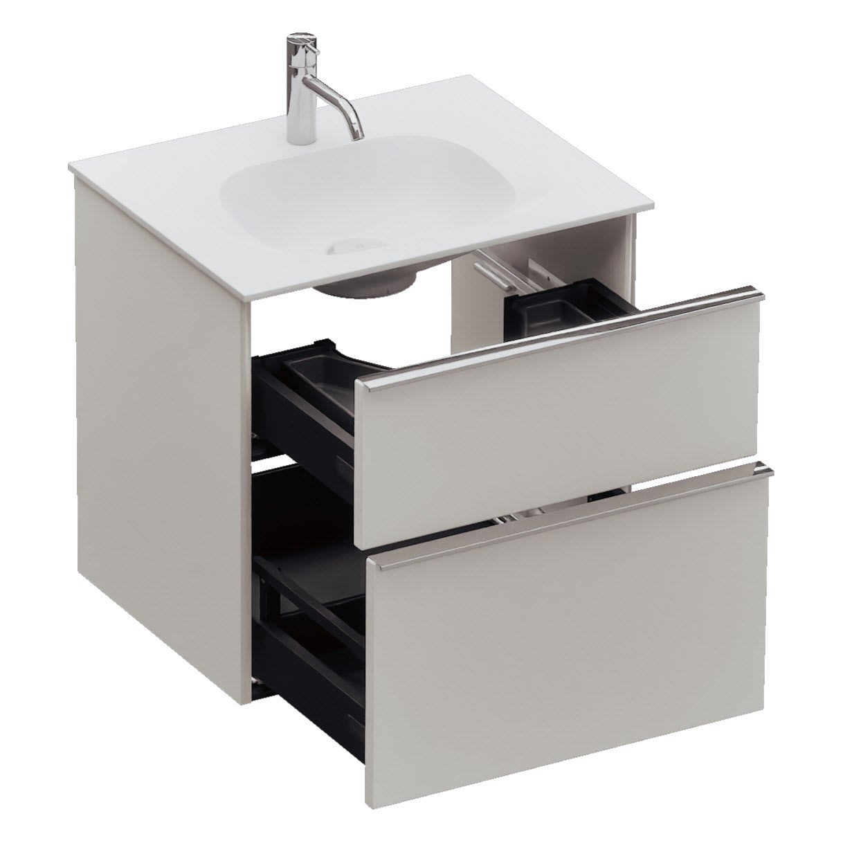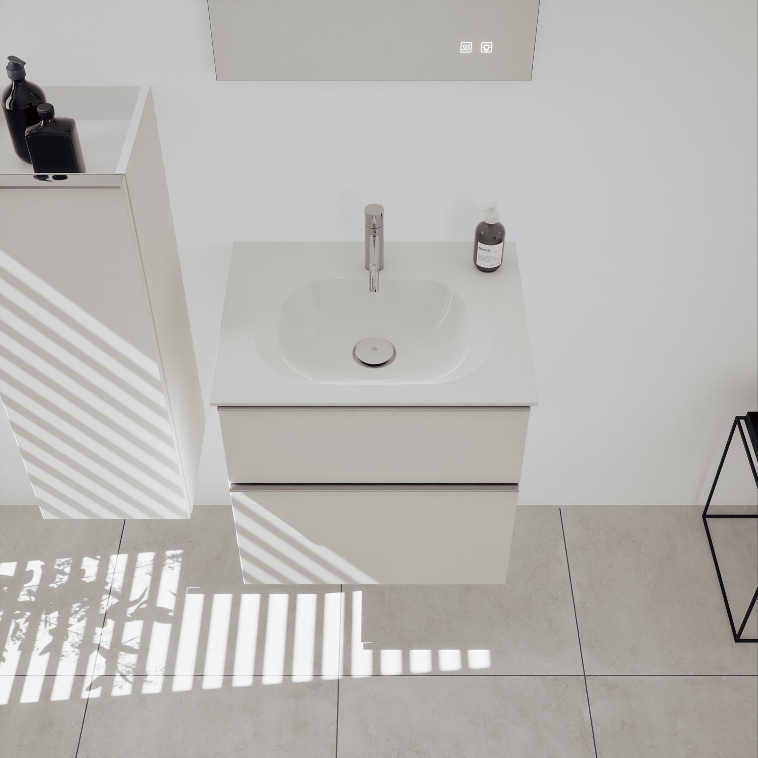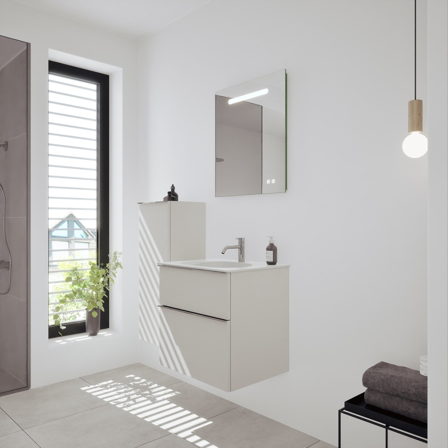 burgbad Fiumo 2.0 Mineralguss-Waschtisch mit Waschtischunterschrank 62 cm, mit Griff G0146
