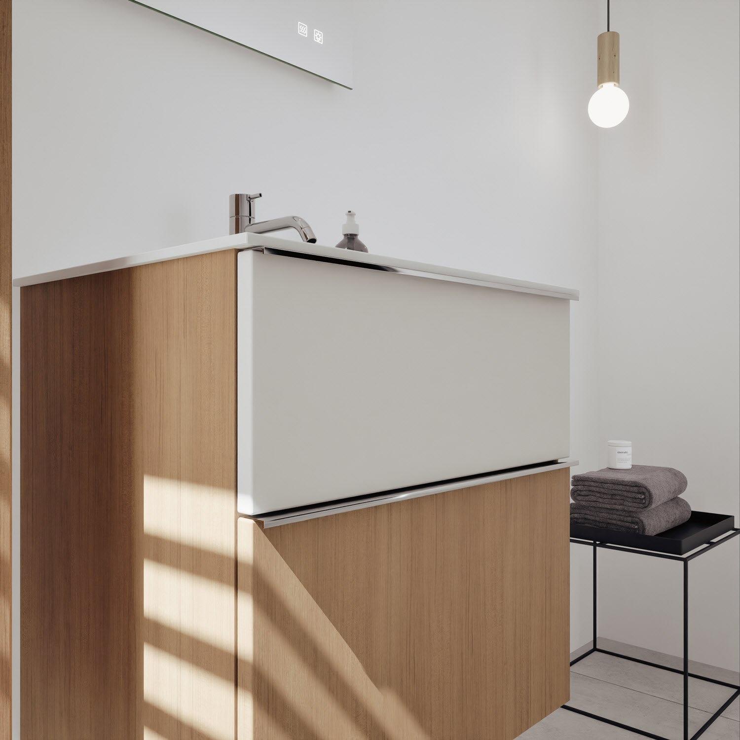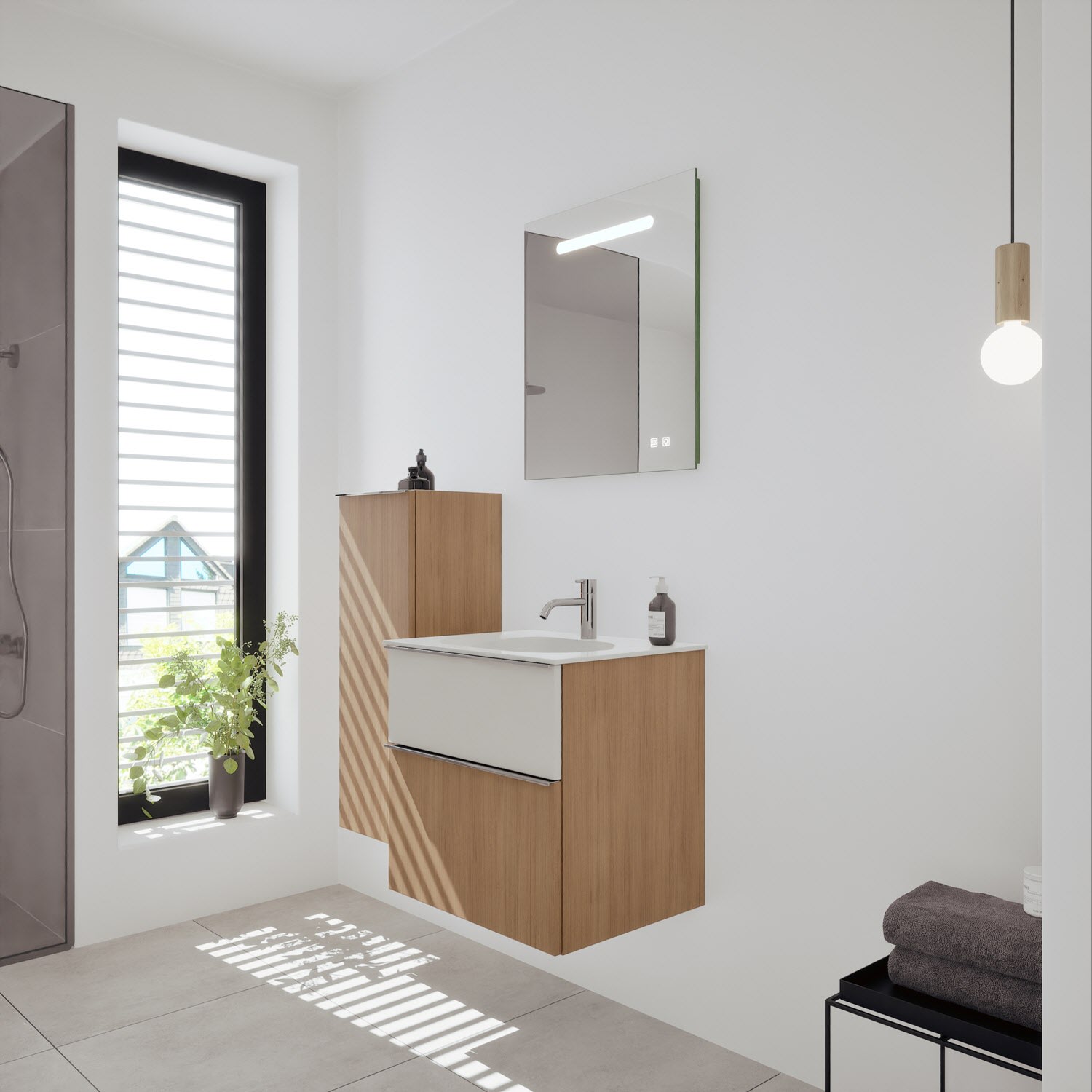 burgbad Fiumo 2.0 Mineralguss-Waschtisch mit Waschtischunterschrank 62 cm, mit Griff G0146