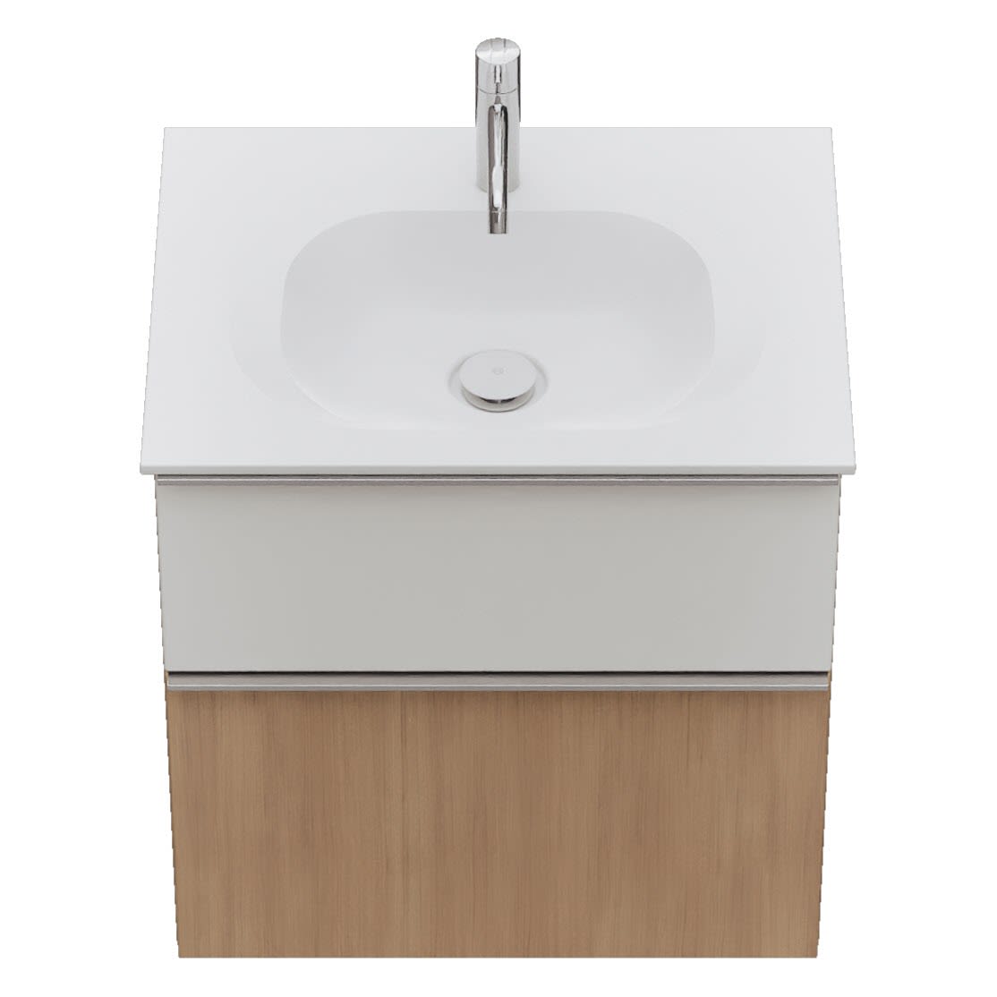 - 1 Schublade oben: 35 cm tief, mit Siphonausschnitt und Inneneinteilung