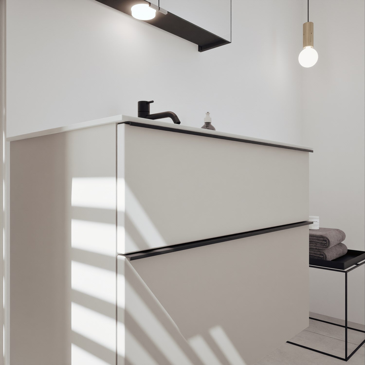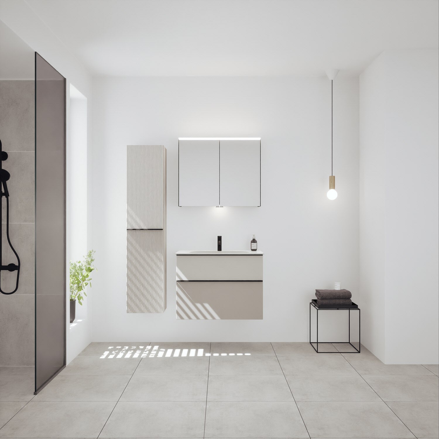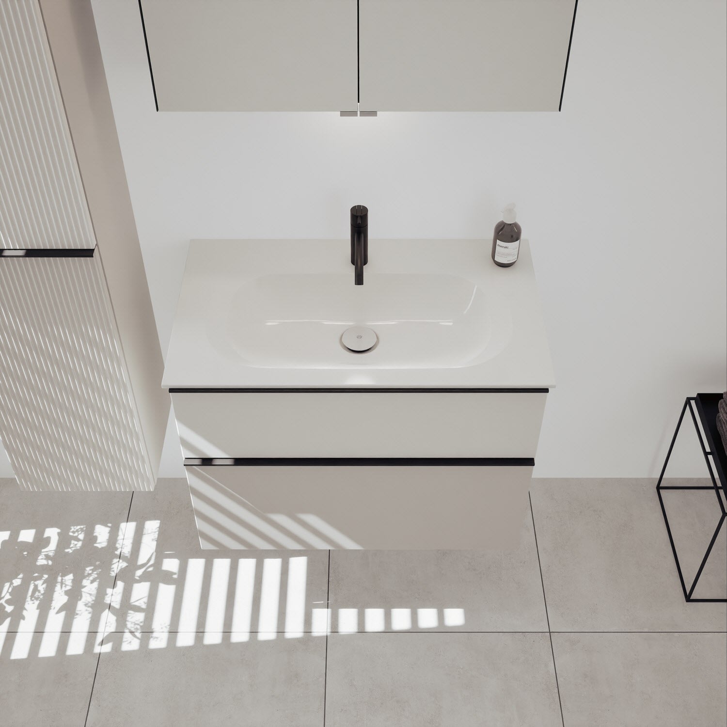 burgbad Fiumo 2.0 Mineralguss-Waschtisch mit Waschtischunterschrank 82 cm, mit Griff G0200