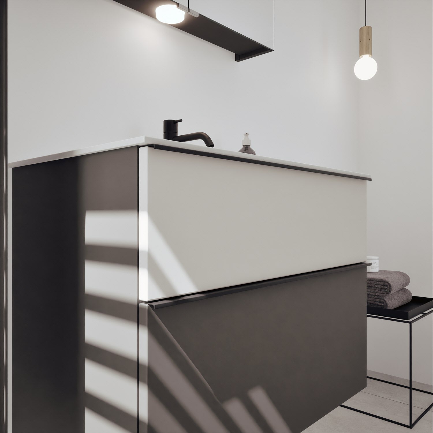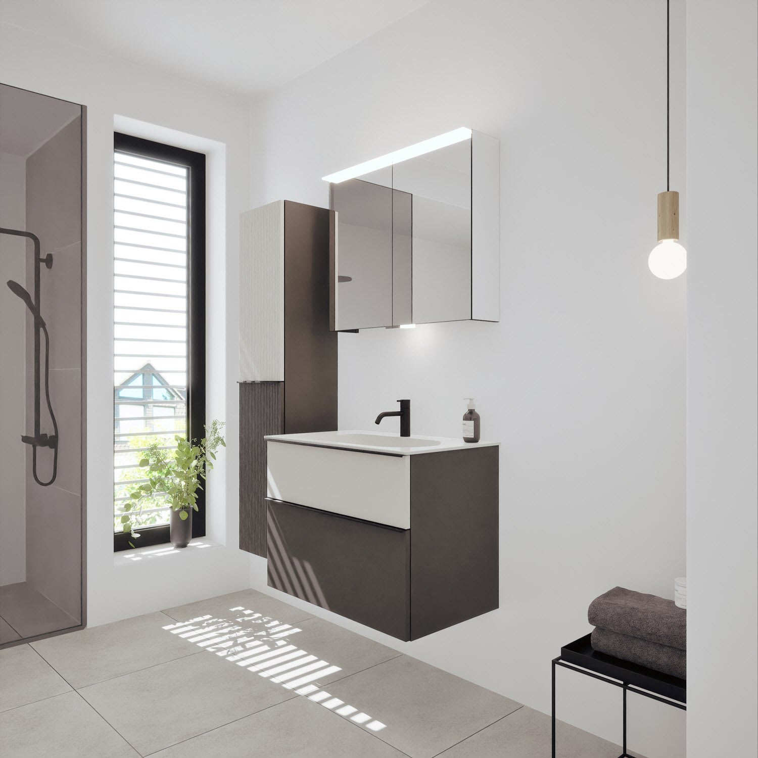 burgbad Fiumo 2.0 Mineralguss-Waschtisch mit Waschtischunterschrank 82 cm, mit Griff G0200