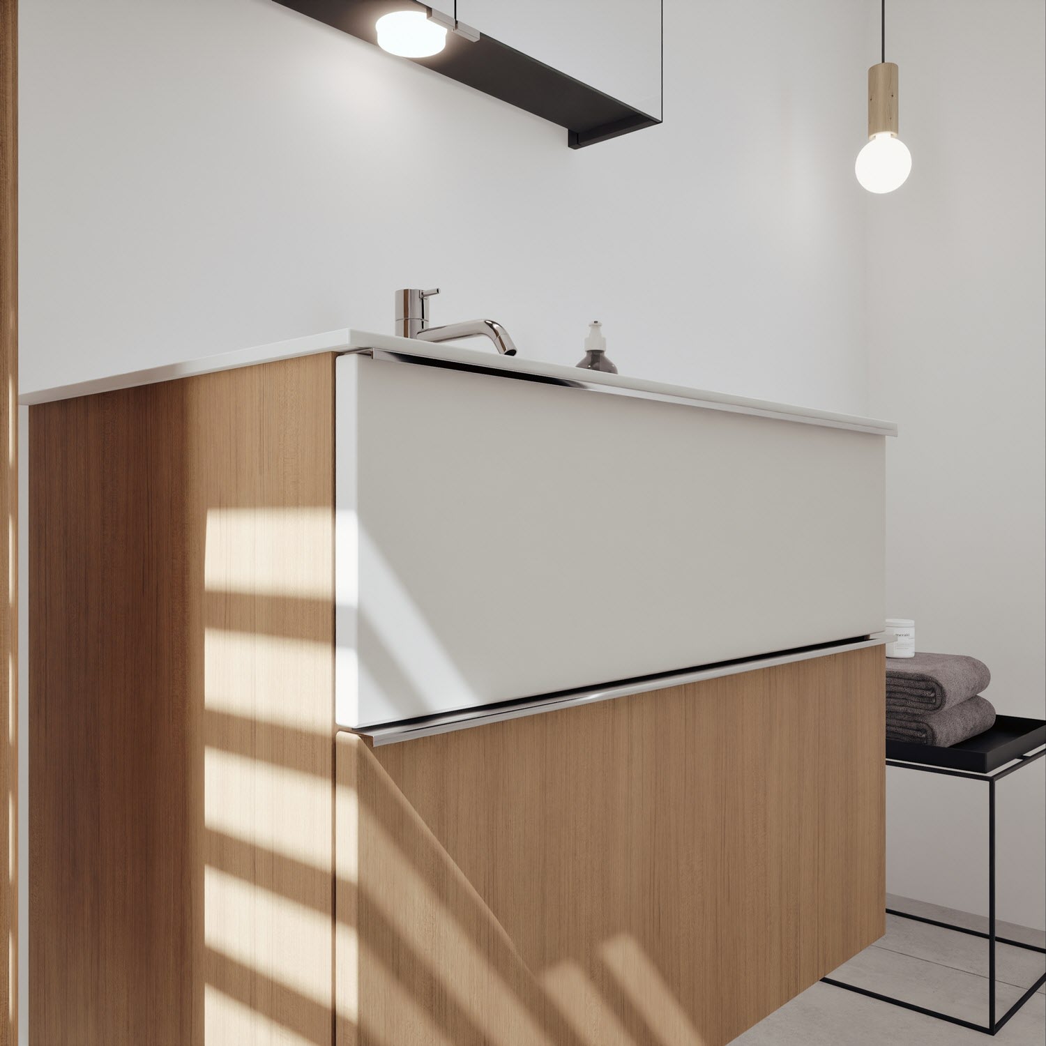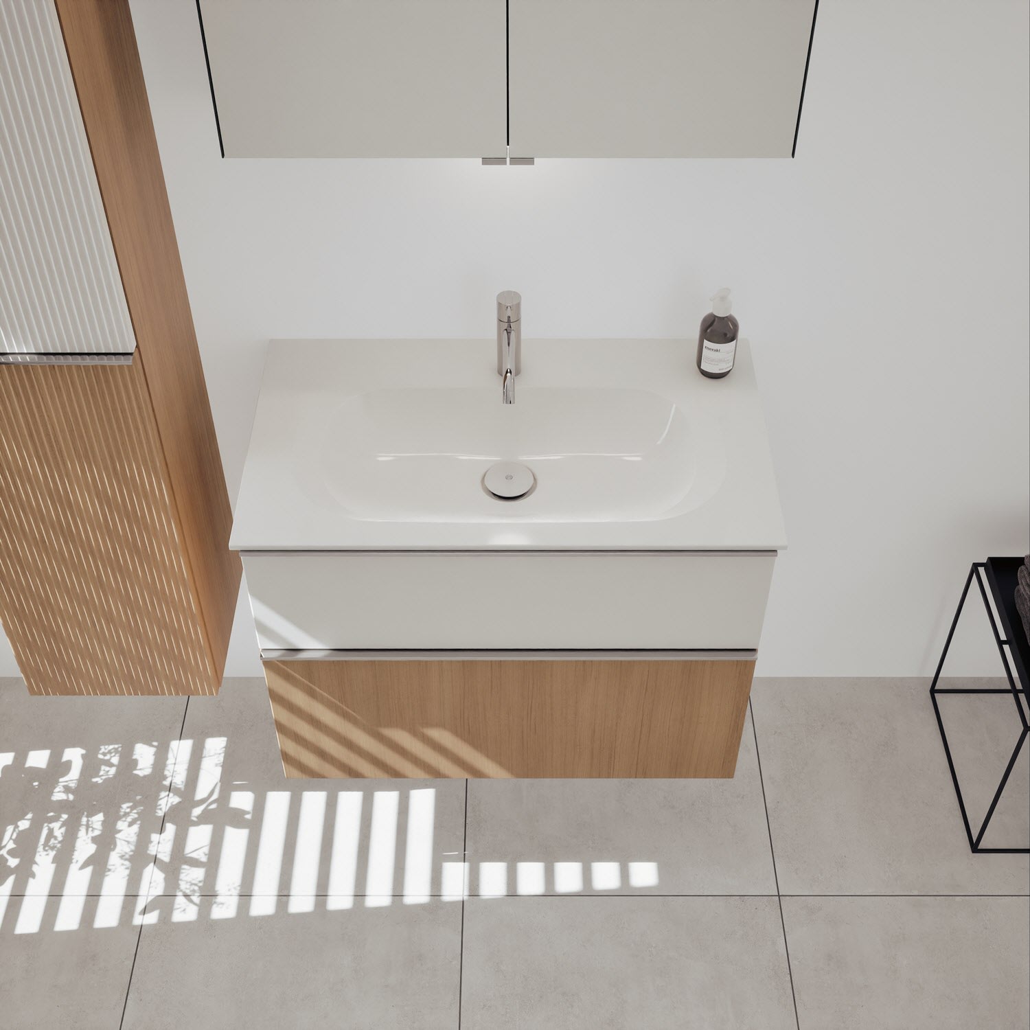burgbad Fiumo 2.0 Mineralguss-Waschtisch mit Waschtischunterschrank 82 cm, mit Griff G0146
