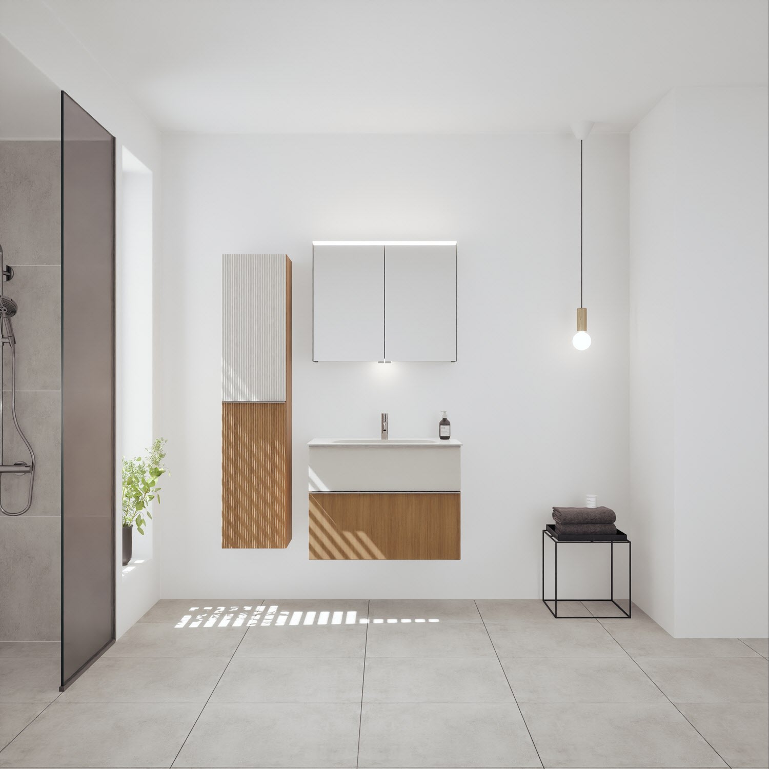 burgbad Fiumo 2.0 Spiegelschrank 80,6 cm mit LED-Aufsatzleuchte und Waschplatzbeleuchtung, 2 Spiegeltüren