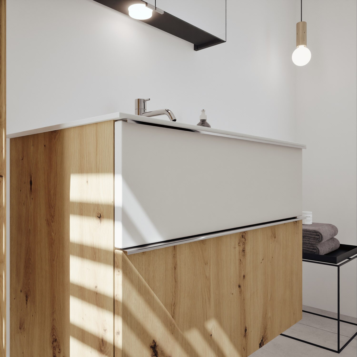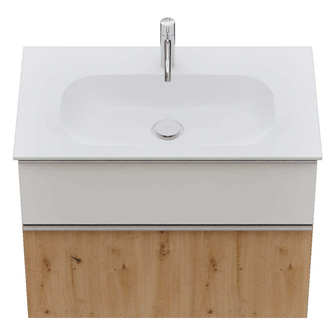 - 1 Schublade oben: 35 cm tief, mit Siphonausschnitt und Inneneinteilung