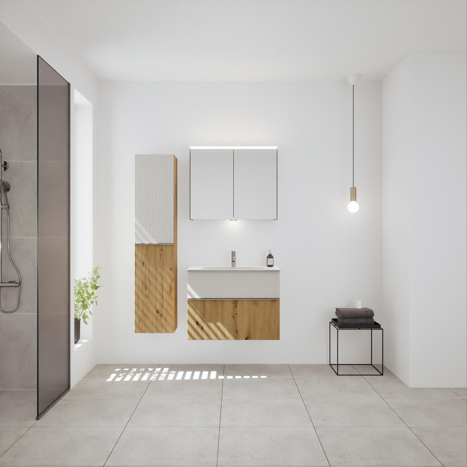 burgbad Fiumo 2.0 Mineralguss-Waschtisch mit Waschtischunterschrank 82 cm, mit Griff G0146