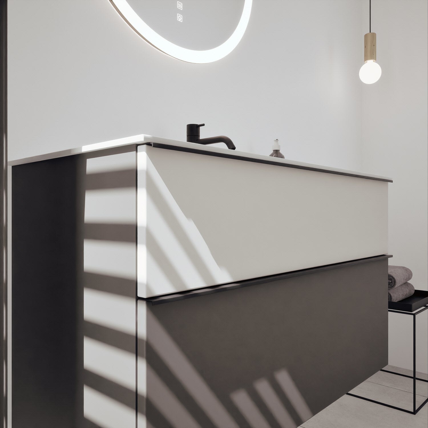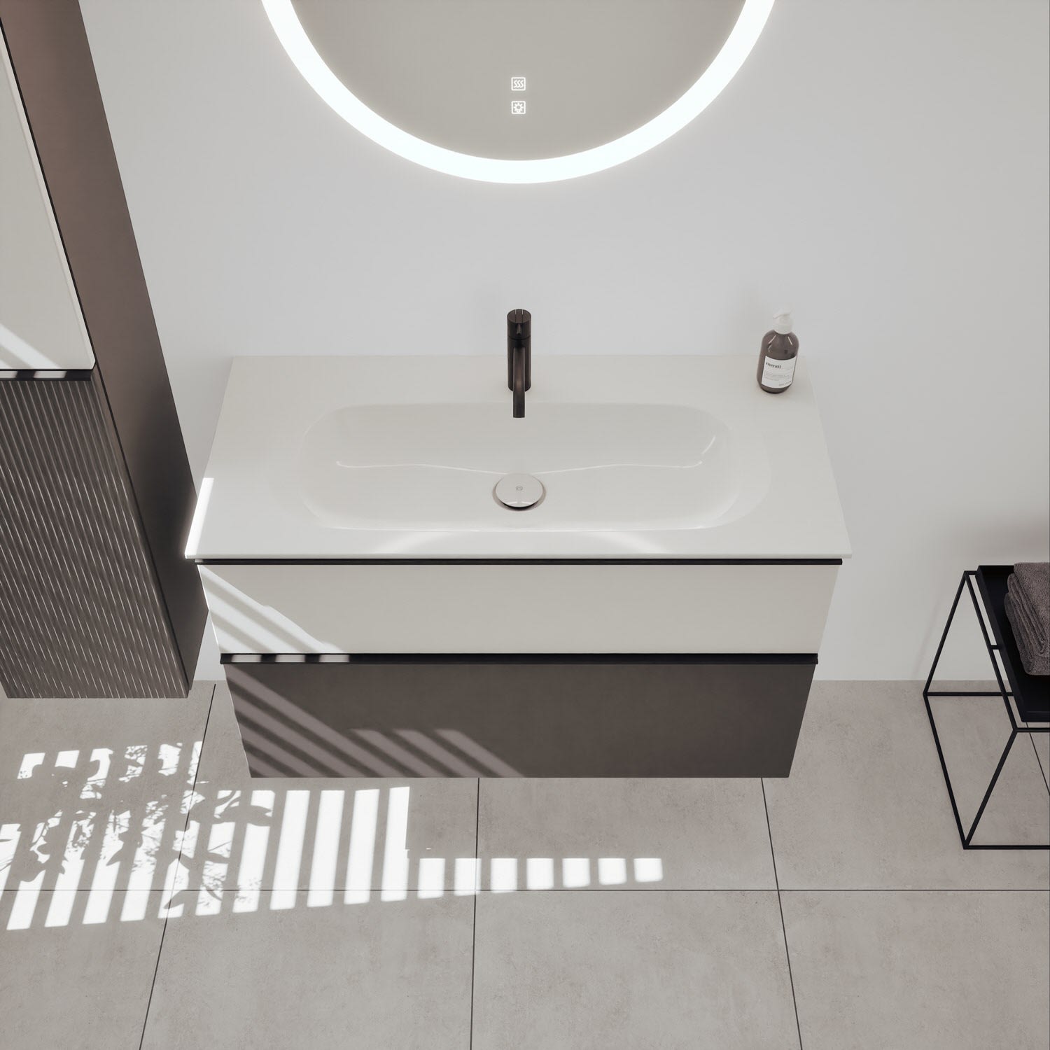 burgbad Fiumo 2.0 Mineralguss-Waschtisch mit Waschtischunterschrank 102 cm, mit Griff G0200