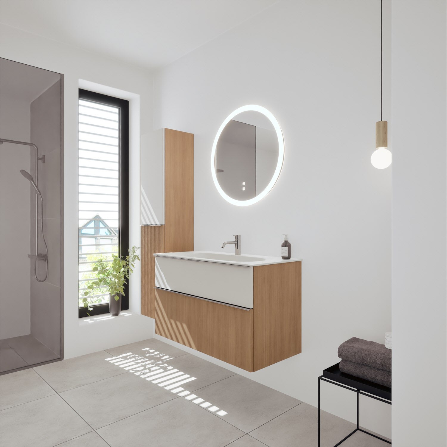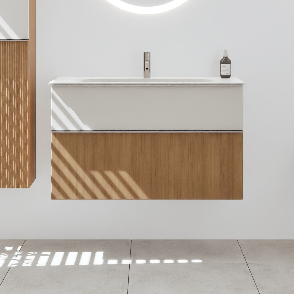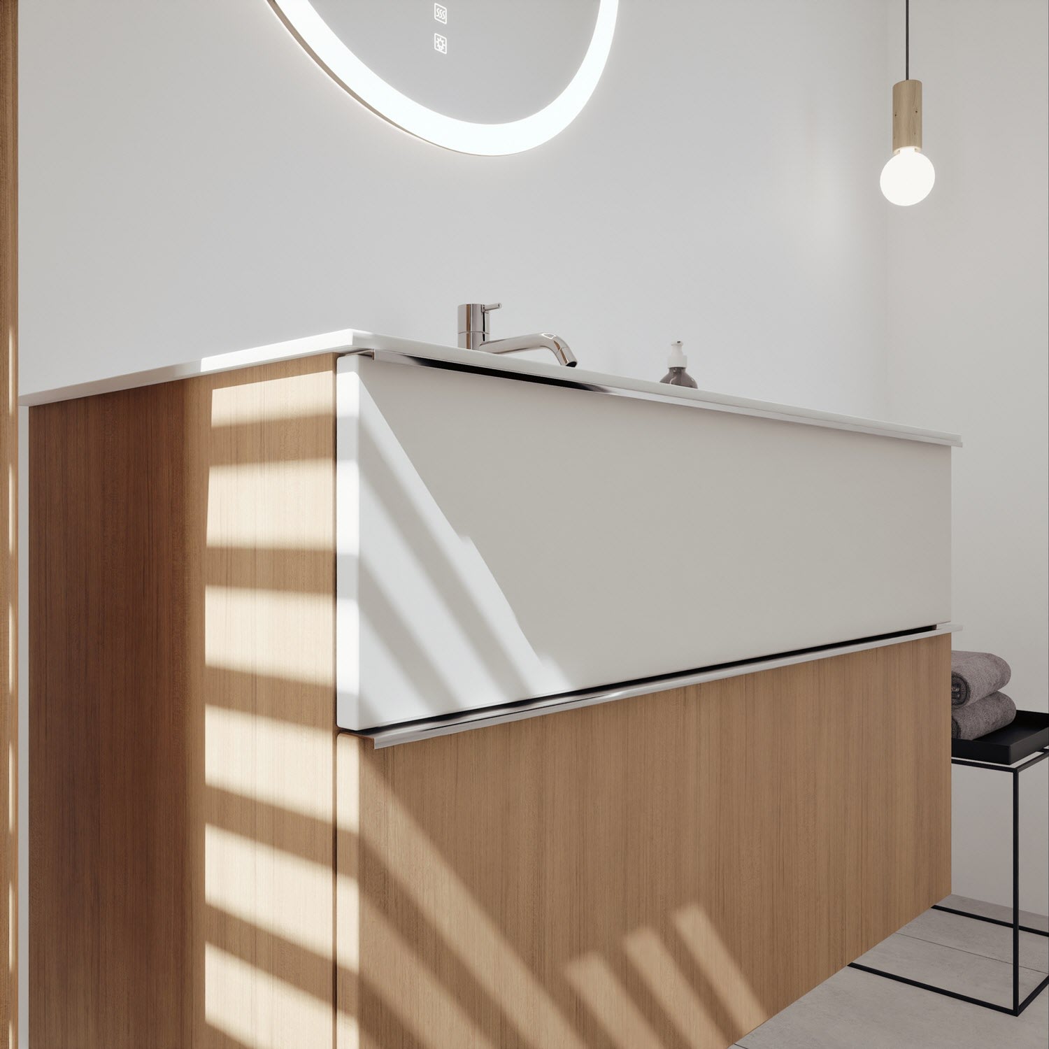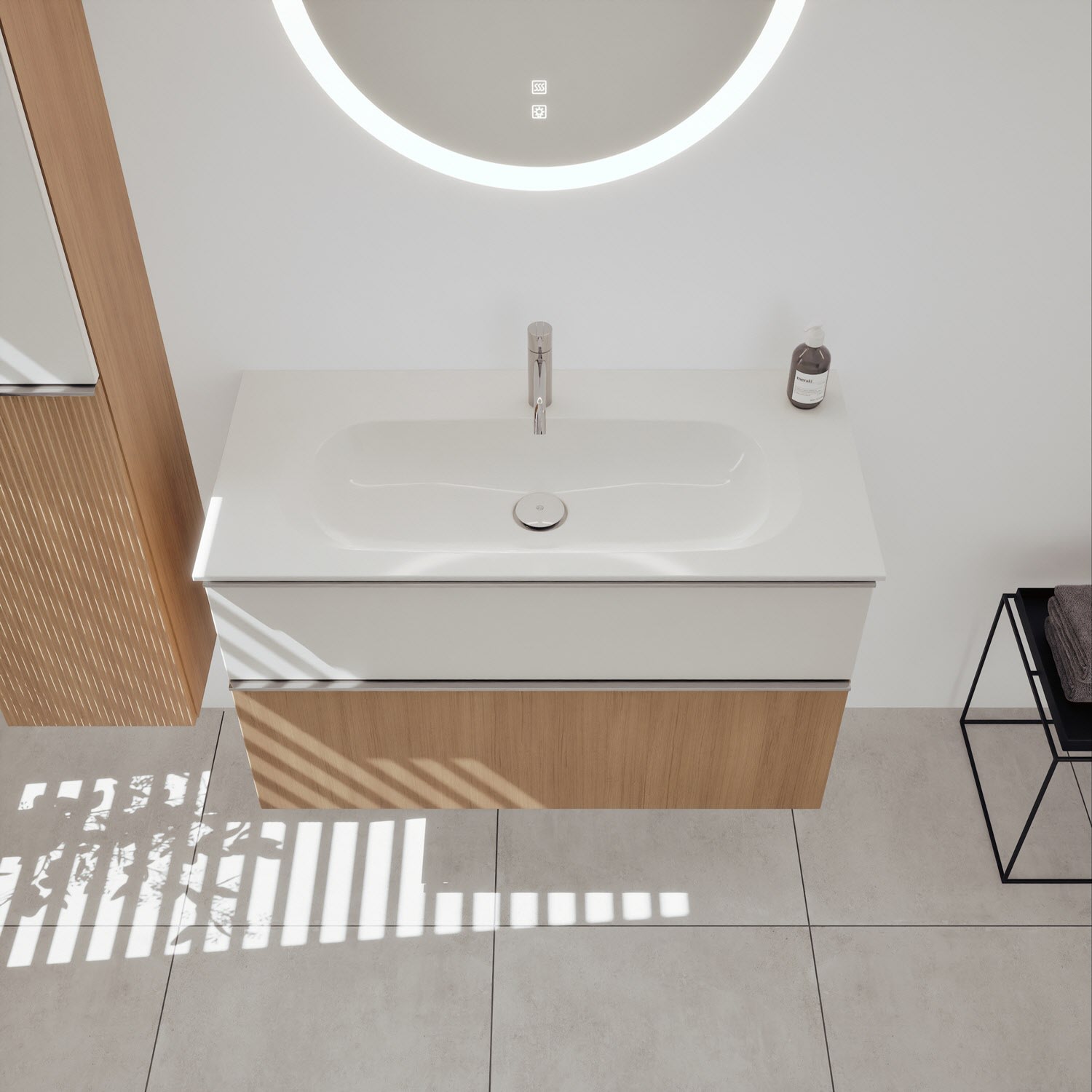 burgbad Fiumo 2.0 Mineralguss-Waschtisch mit Waschtischunterschrank 102 cm, mit Griff G0146