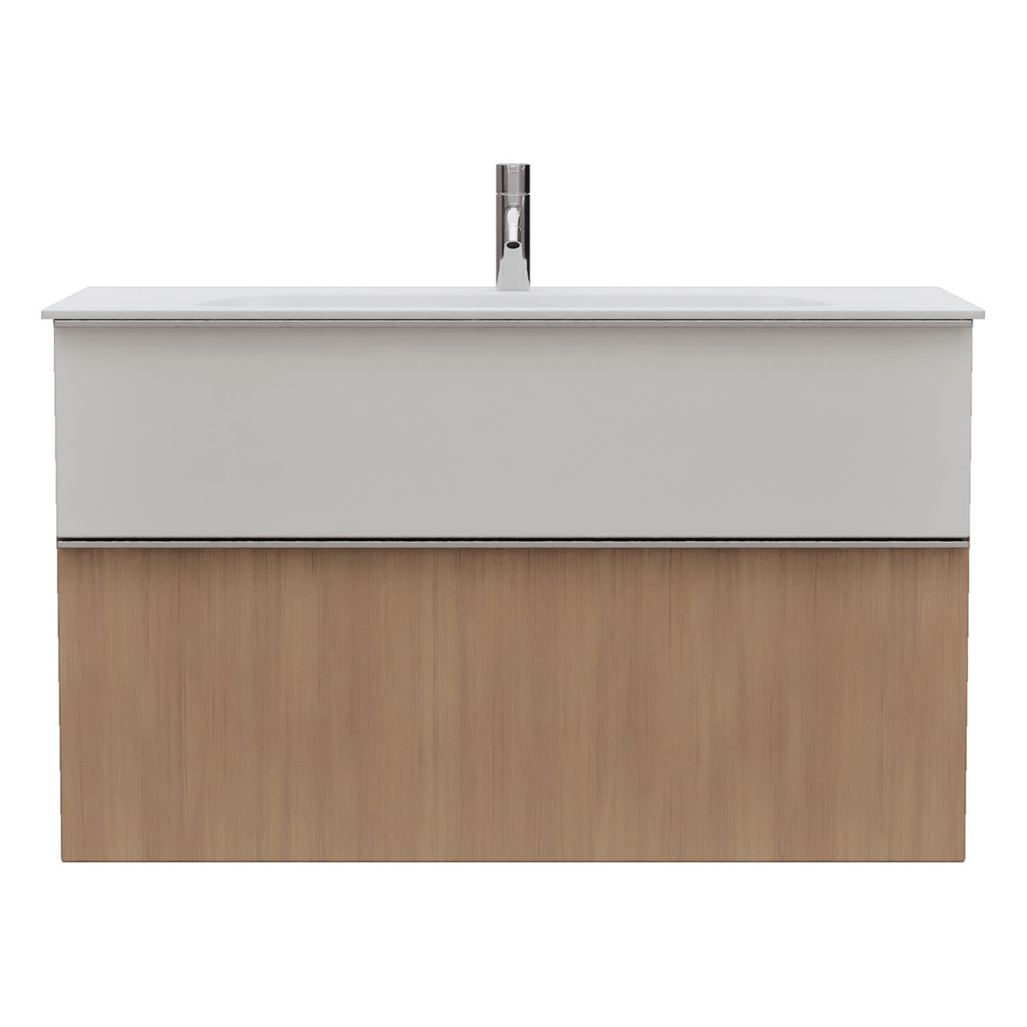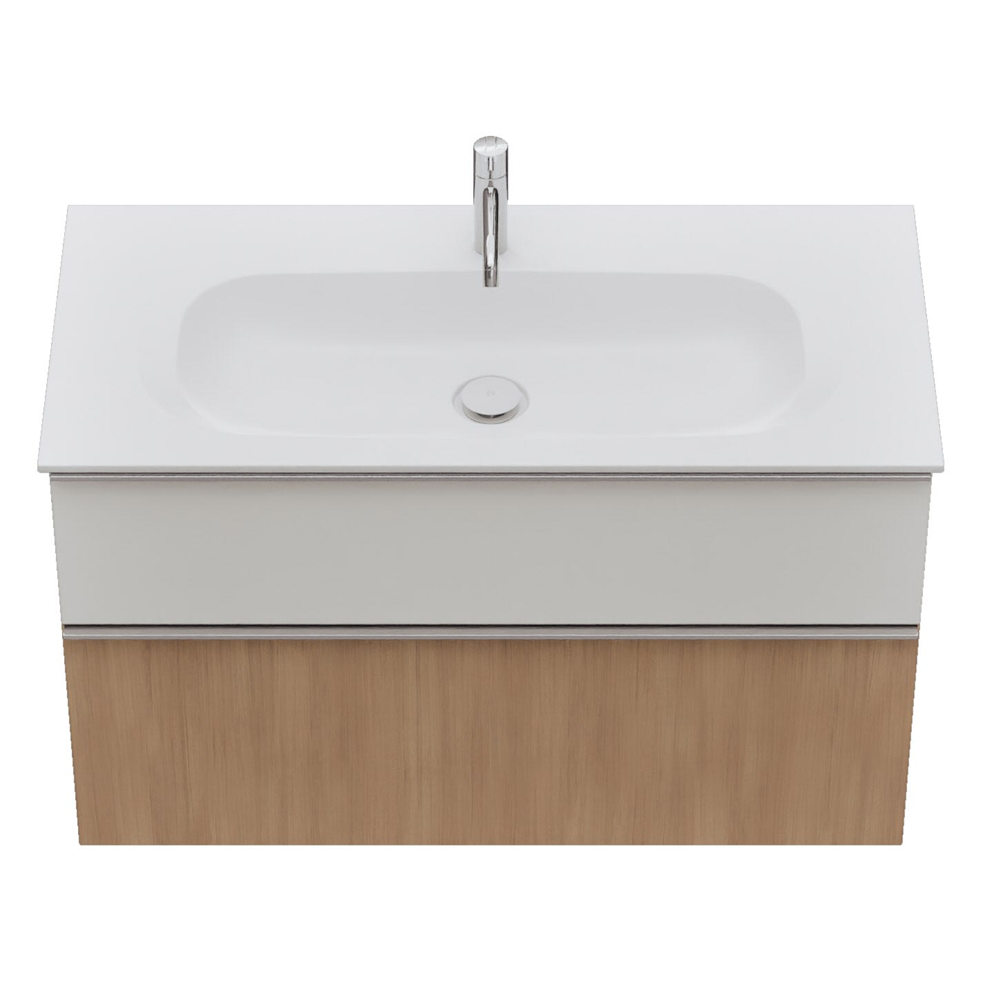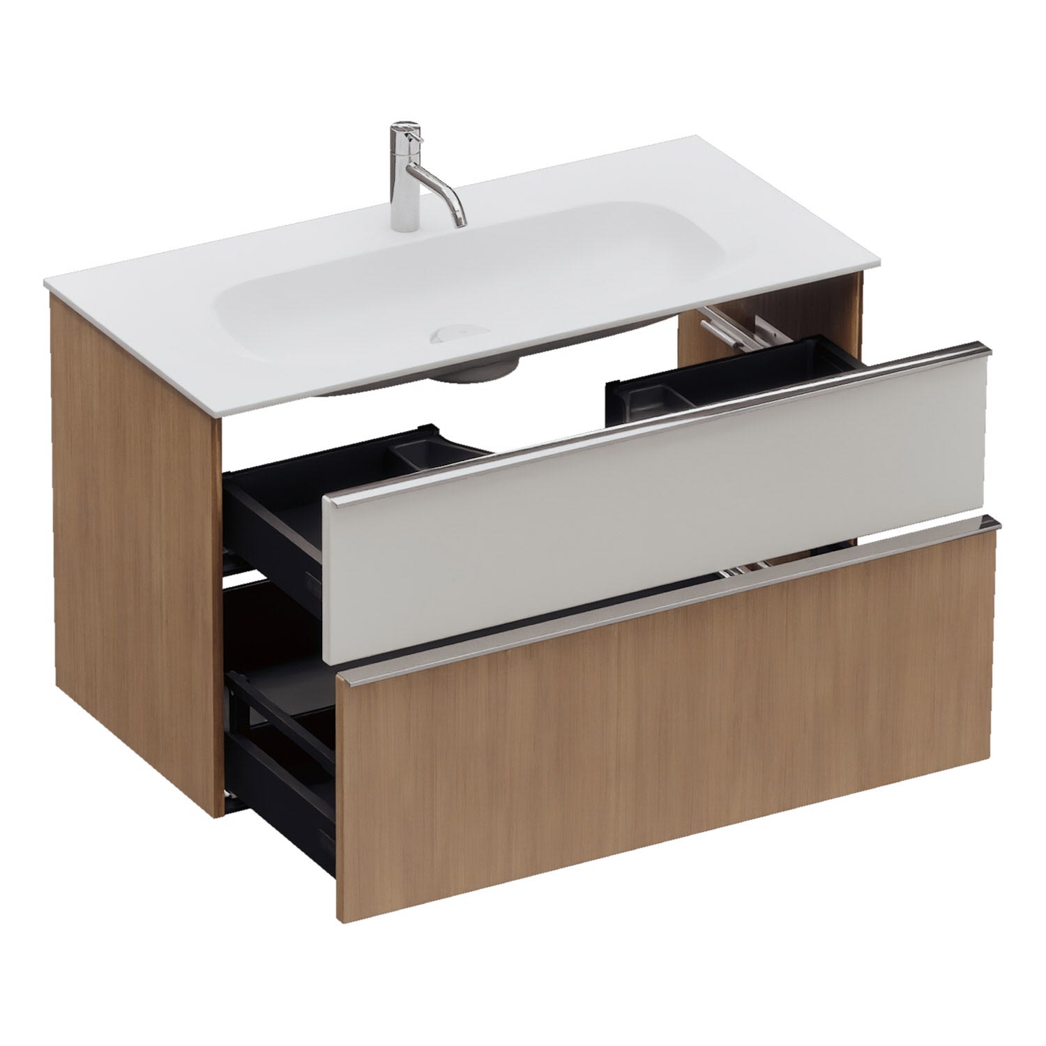 - 1 Schublade oben, 35 cm tief, mit Siphonausschnitt und Inneneinteilung