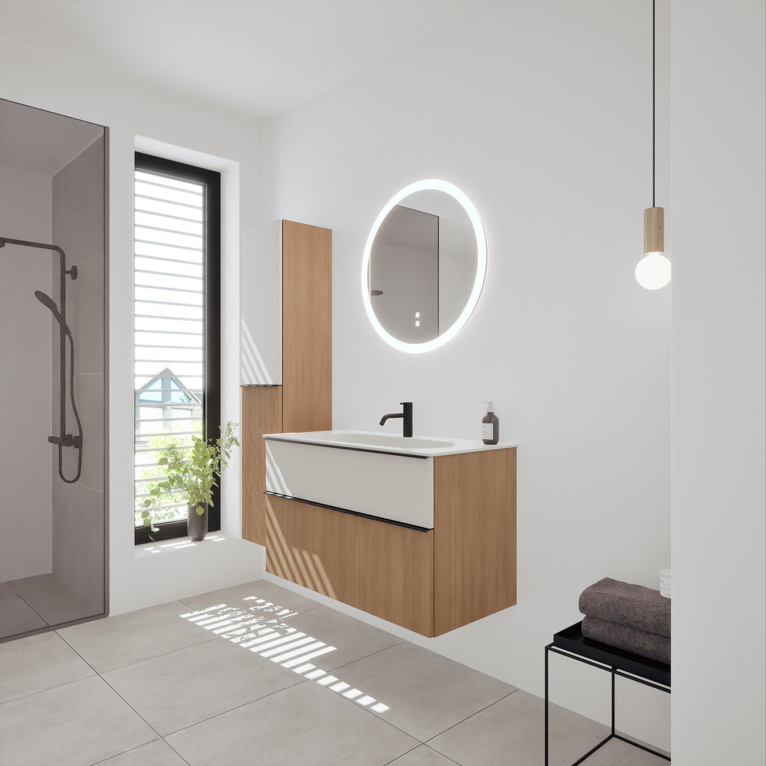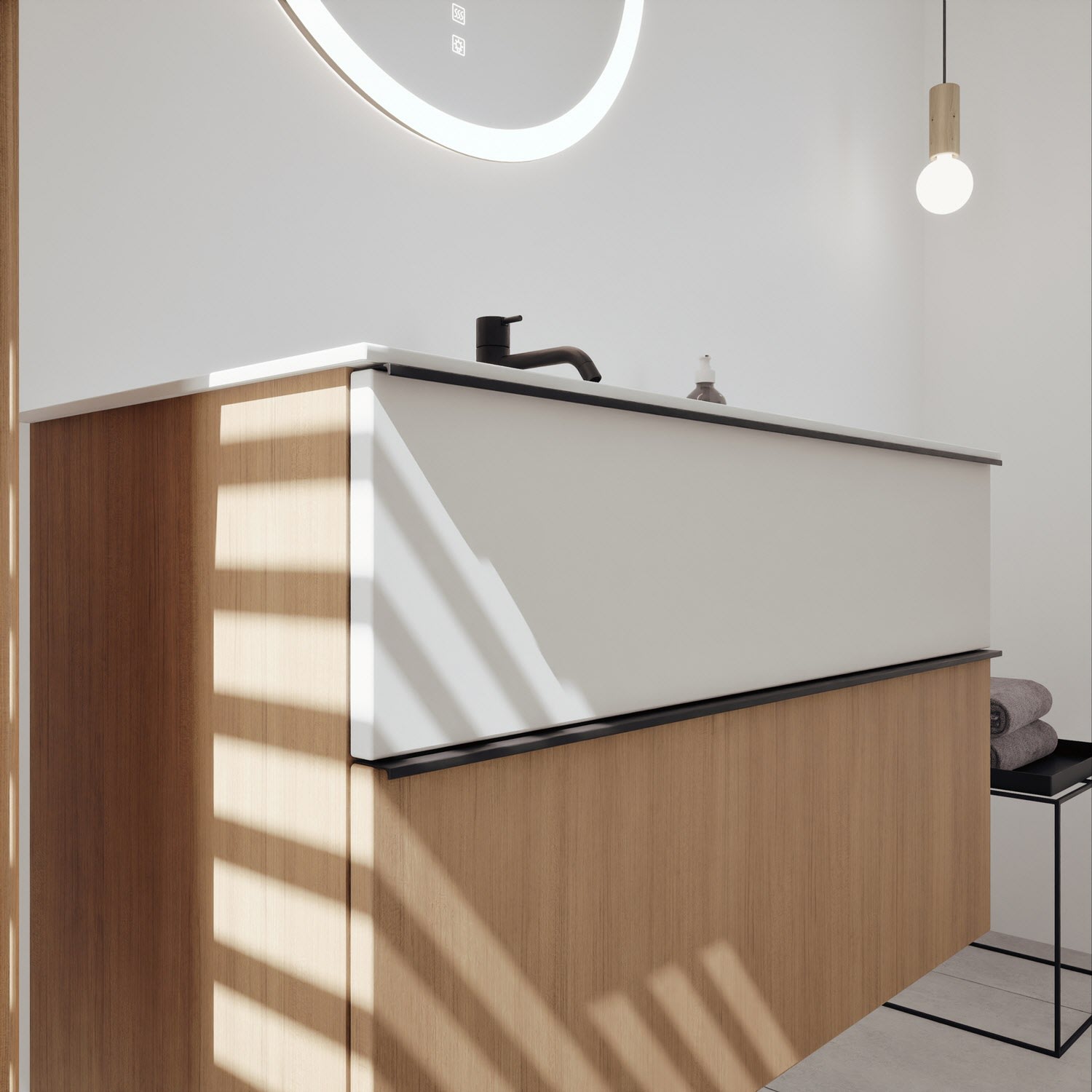 burgbad Fiumo 2.0 Mineralguss-Waschtisch mit Waschtischunterschrank 102 cm, mit Griff G0200
