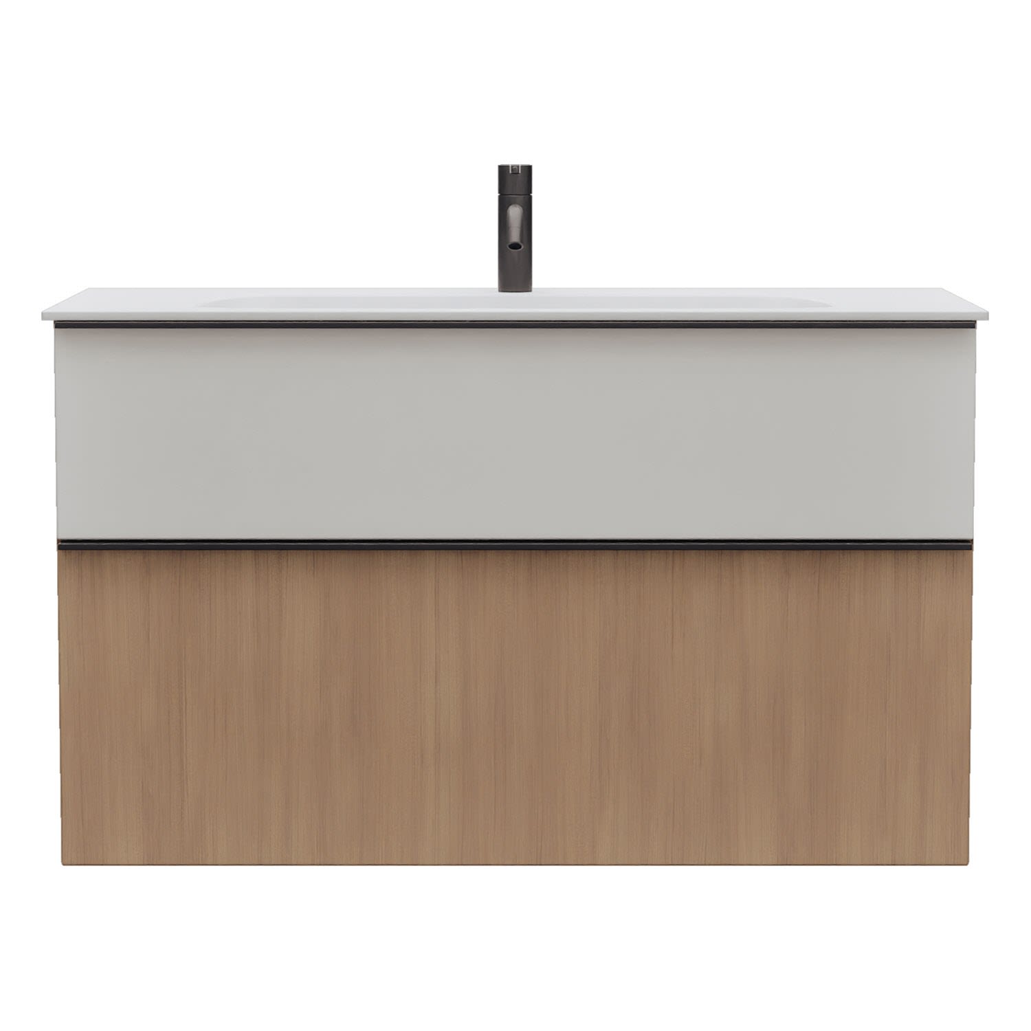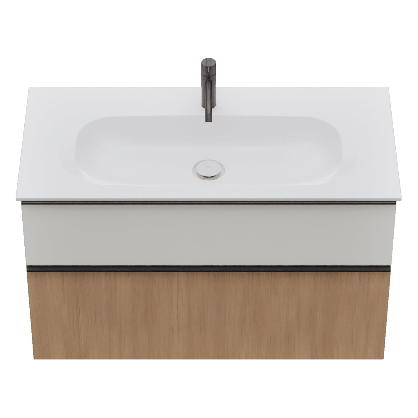 - 1 Schublade oben, 35 cm tief, mit Siphonausschnitt und Inneneinteilung