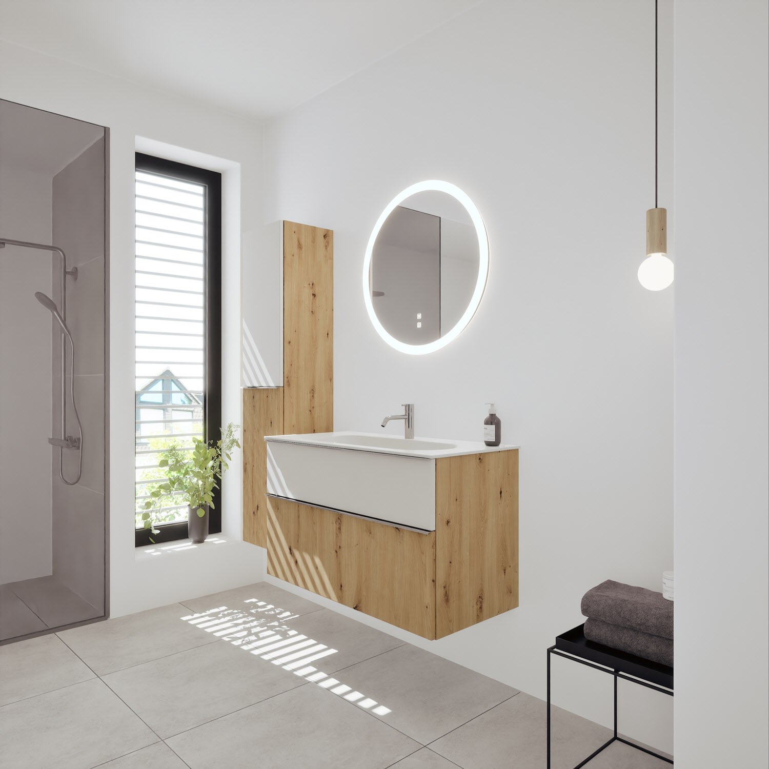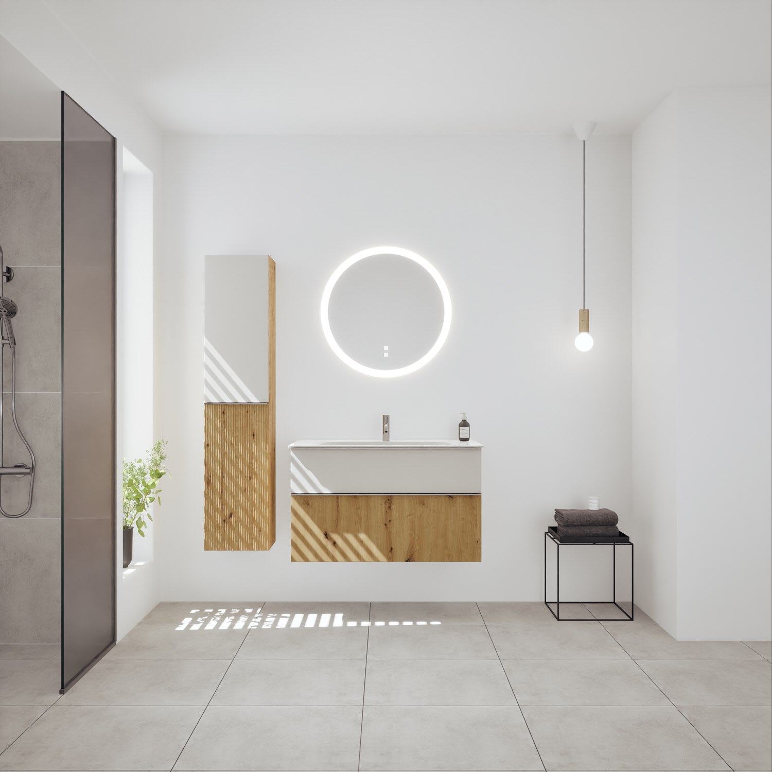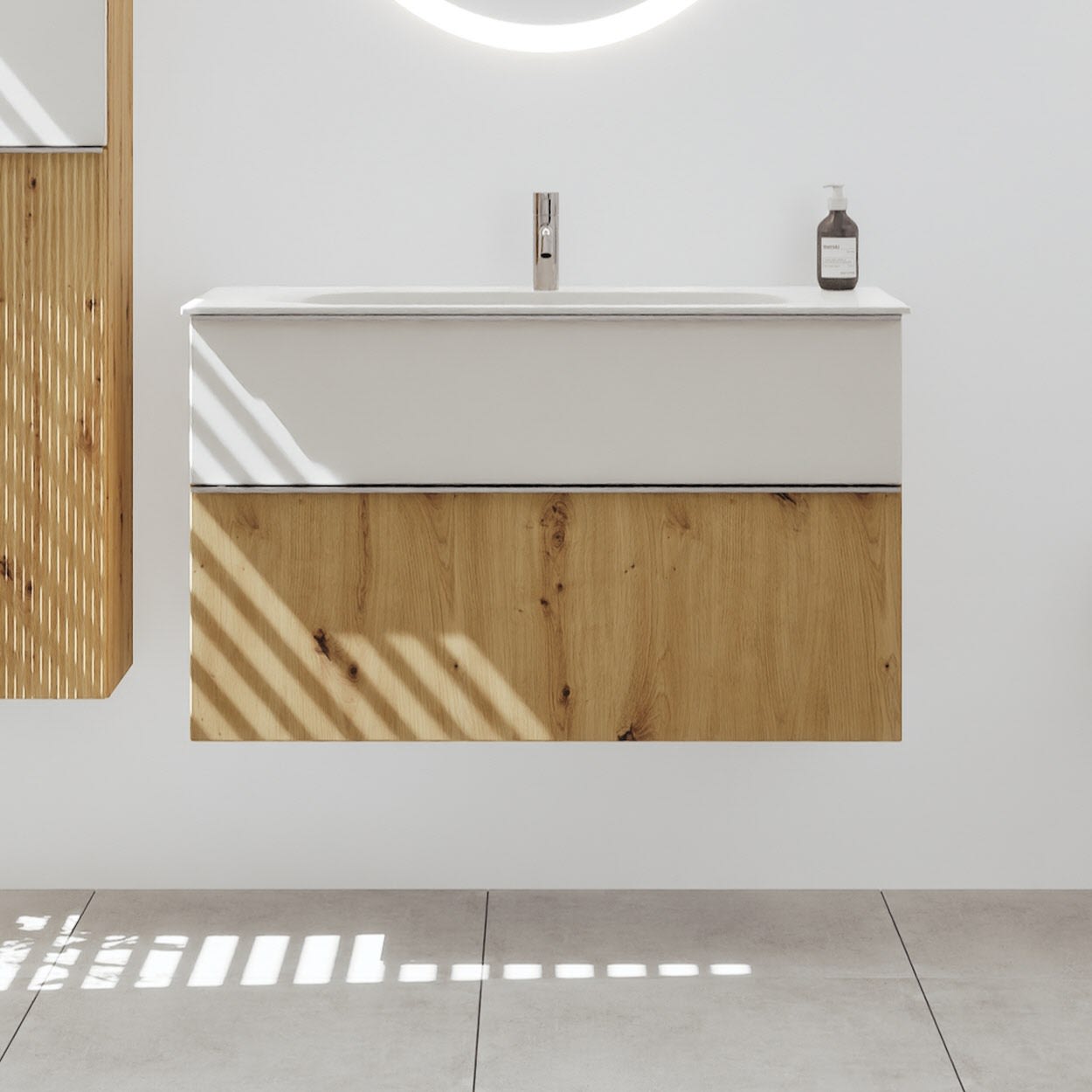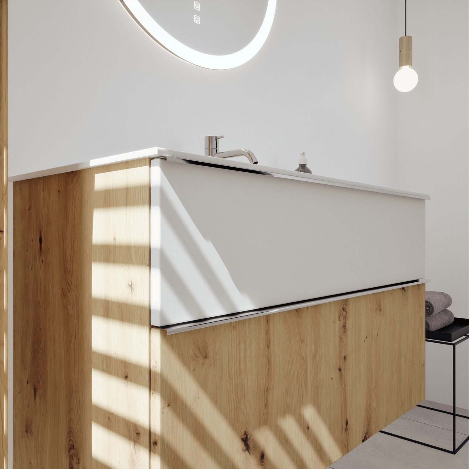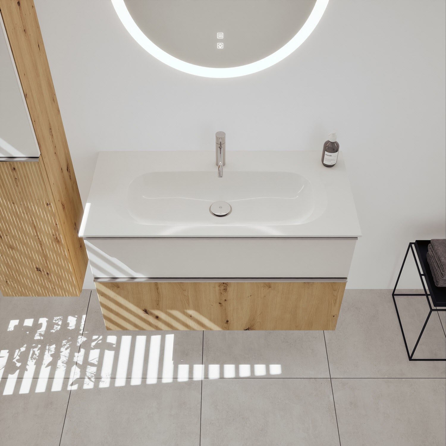 burgbad Fiumo 2.0 Mineralguss-Waschtisch mit Waschtischunterschrank 102 cm, mit Griff G0146