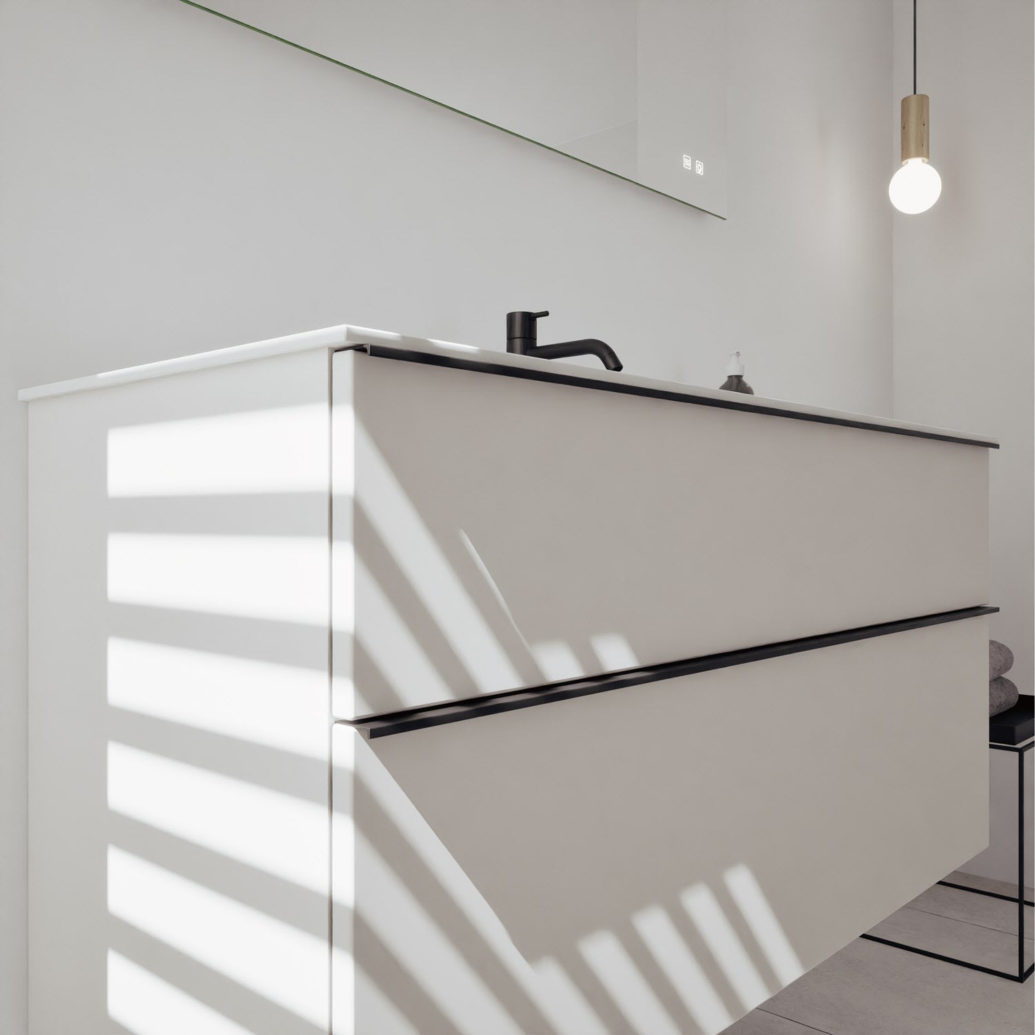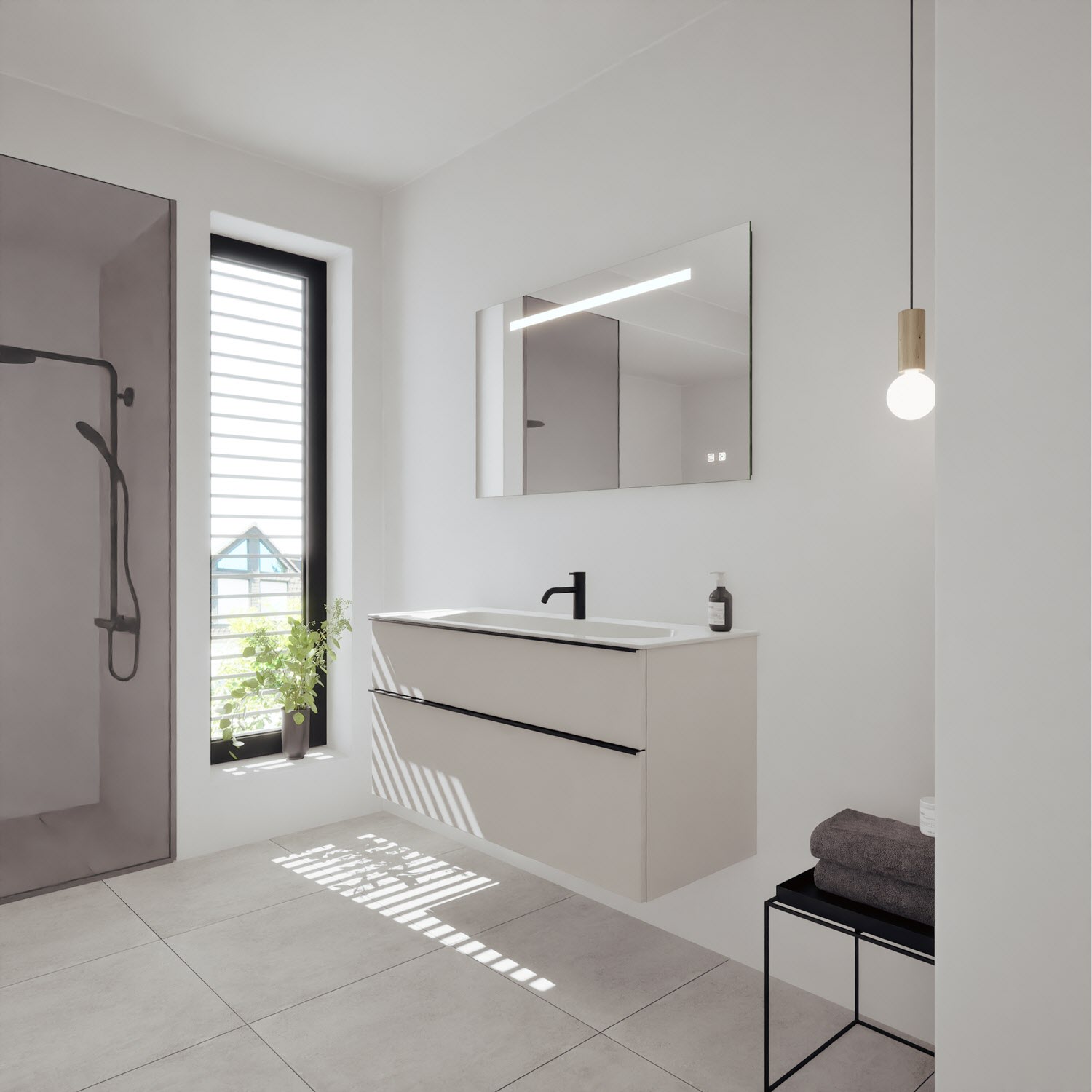 burgbad Fiumo 2.0 Mineralguss-Waschtisch mit Waschtischunterschrank 122 cm, mit Griff G0200