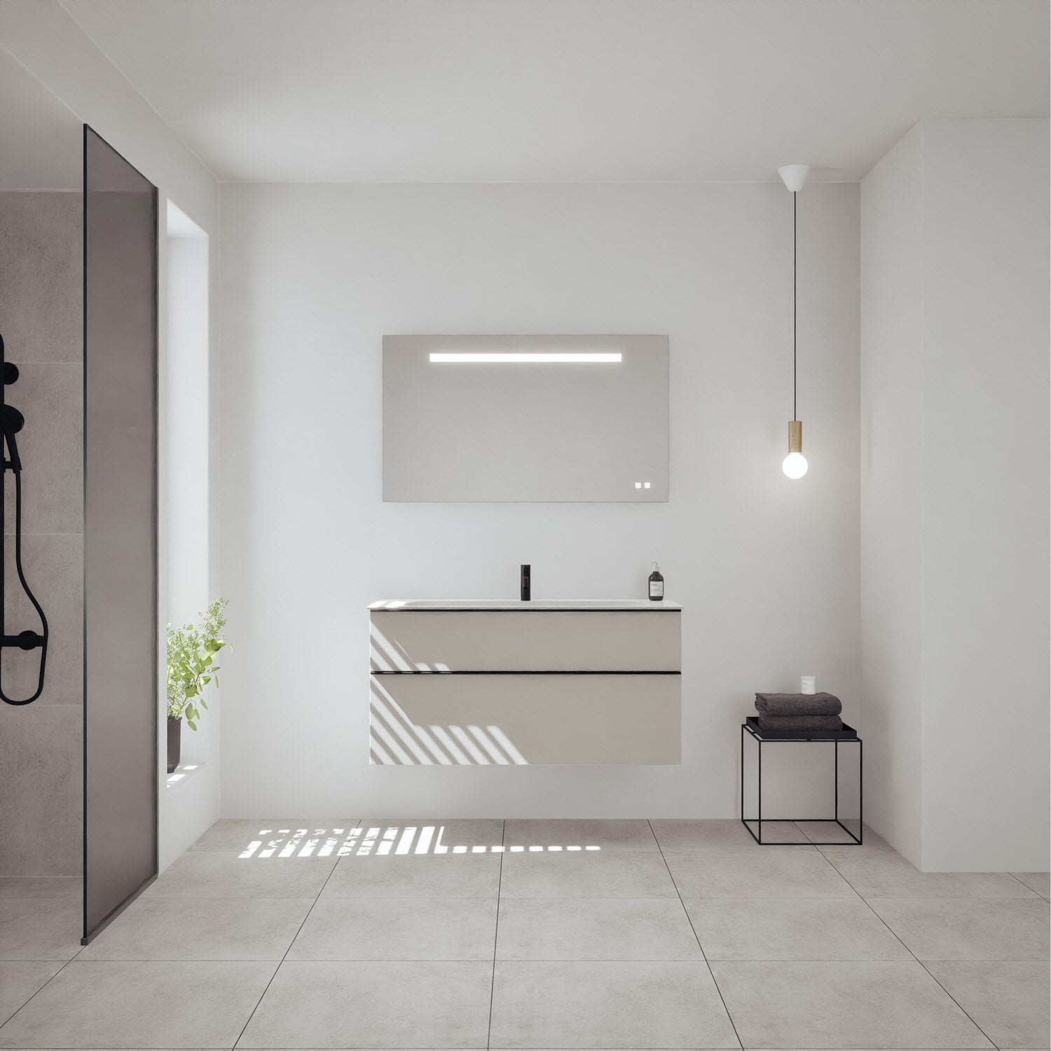 burgbad Fiumo 2.0 Badmöbelset 142 cm mit Waschtisch mit Unterschrank mit Griff G0200 und Spiegelschrank
