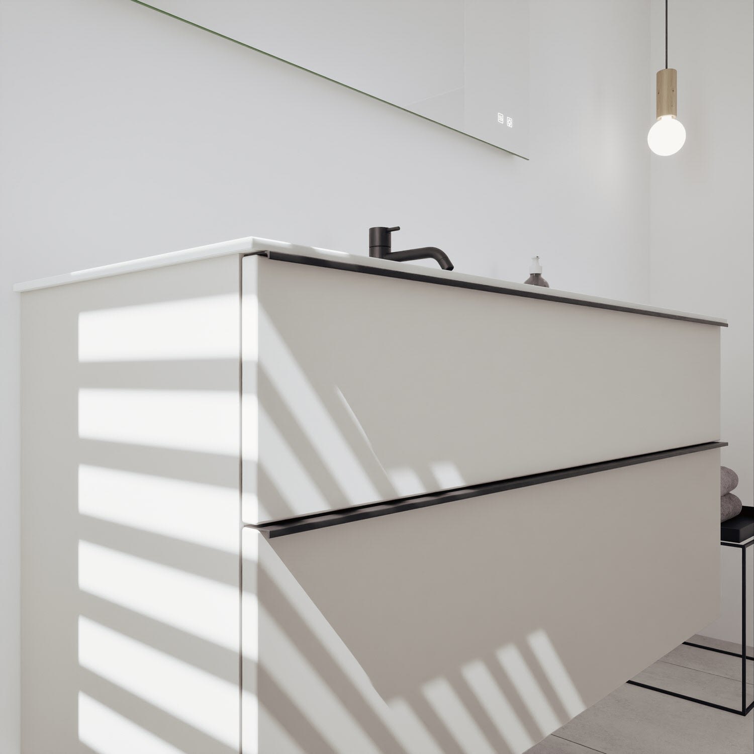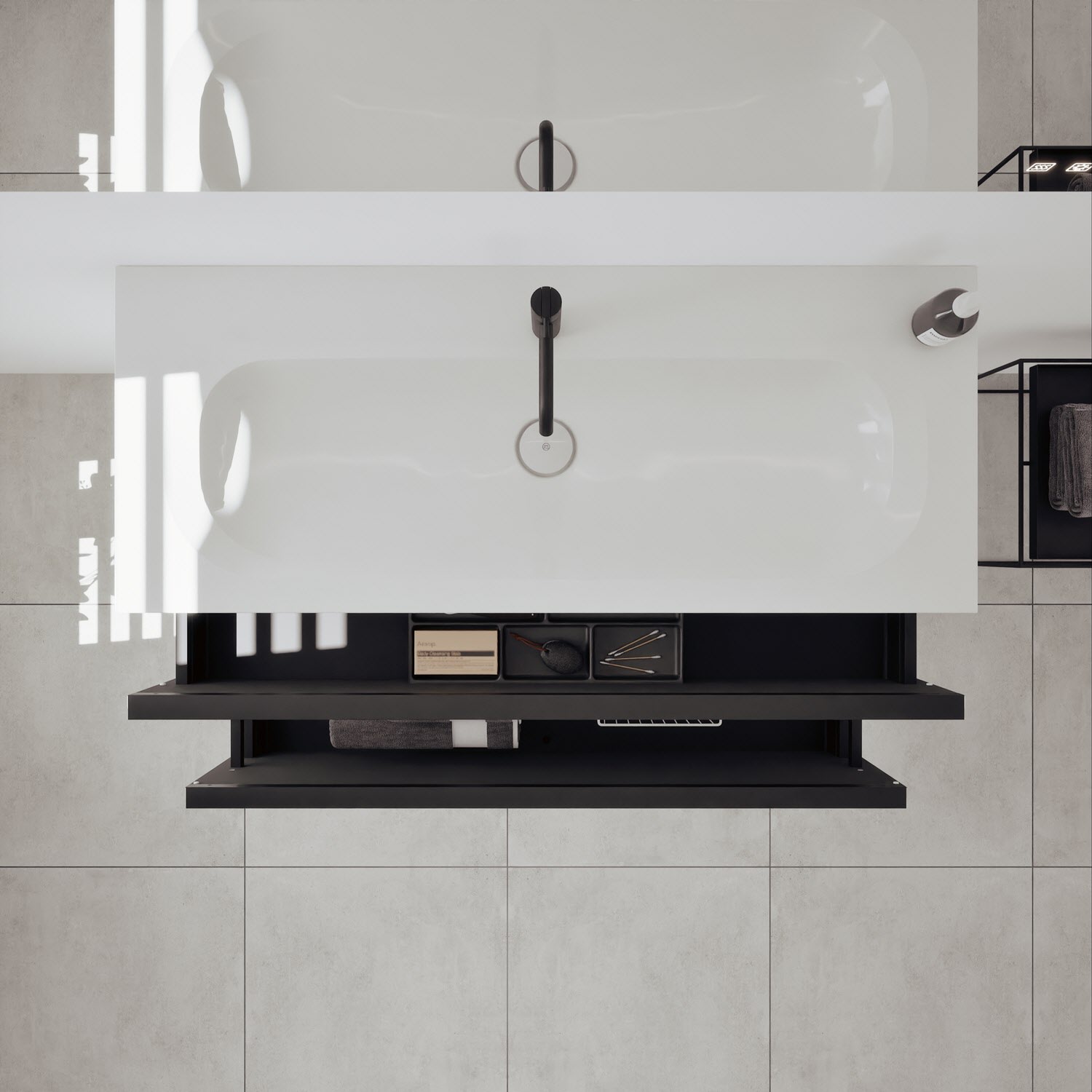 burgbad Fiumo 2.0 Mineralguss-Waschtisch mit Waschtischunterschrank 122 cm, mit Griff G0200