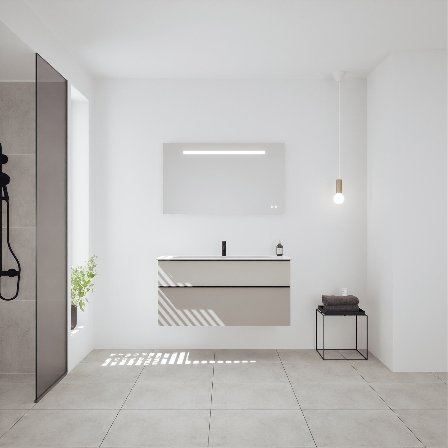 burgbad Fiumo 2.0 Badmöbelset 142 cm mit Waschtisch mit Unterschrank mit Griff G0200 und Spiegelschrank