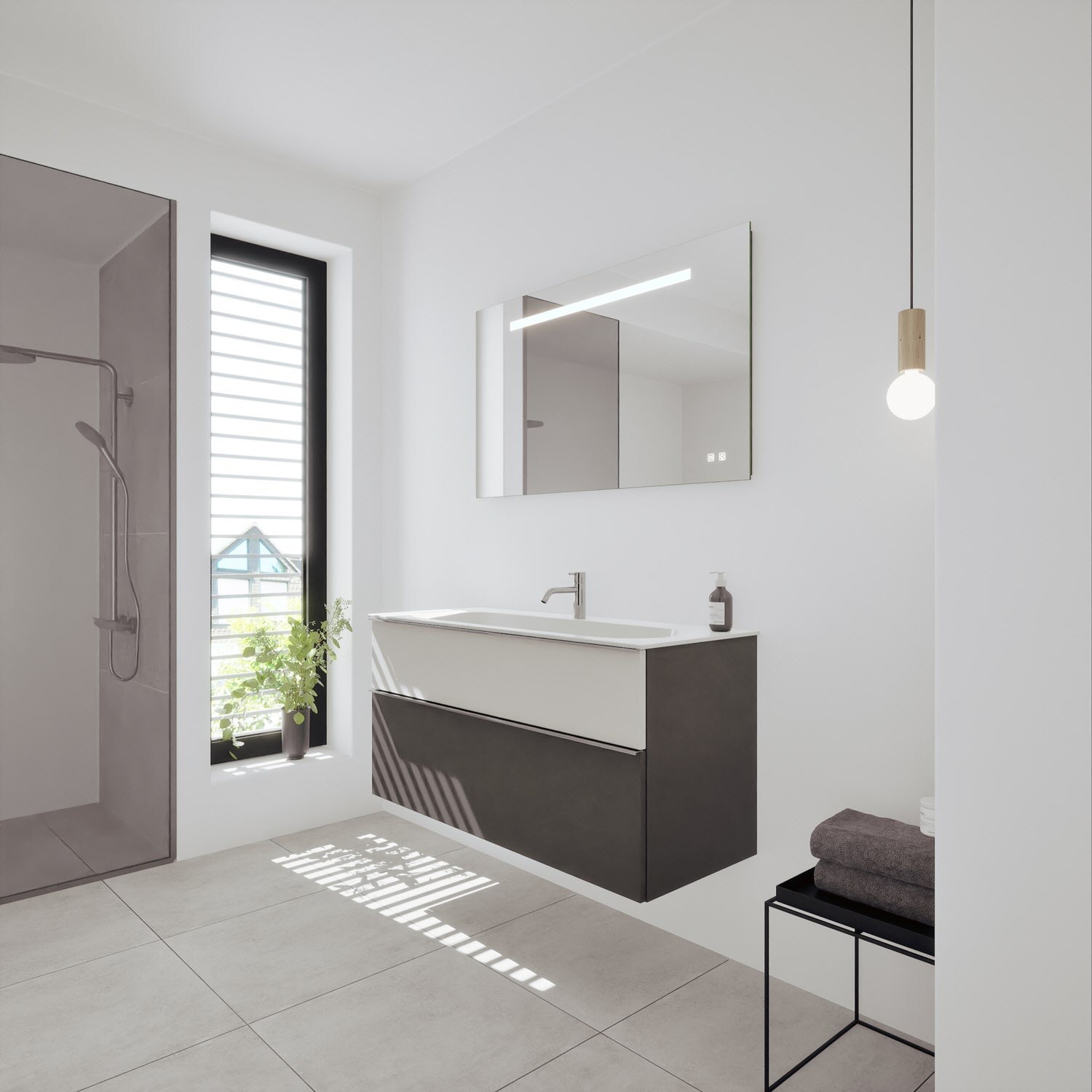 burgbad Fiumo 2.0 Mineralguss-Waschtisch mit Waschtischunterschrank 122 cm, mit Griff G0146