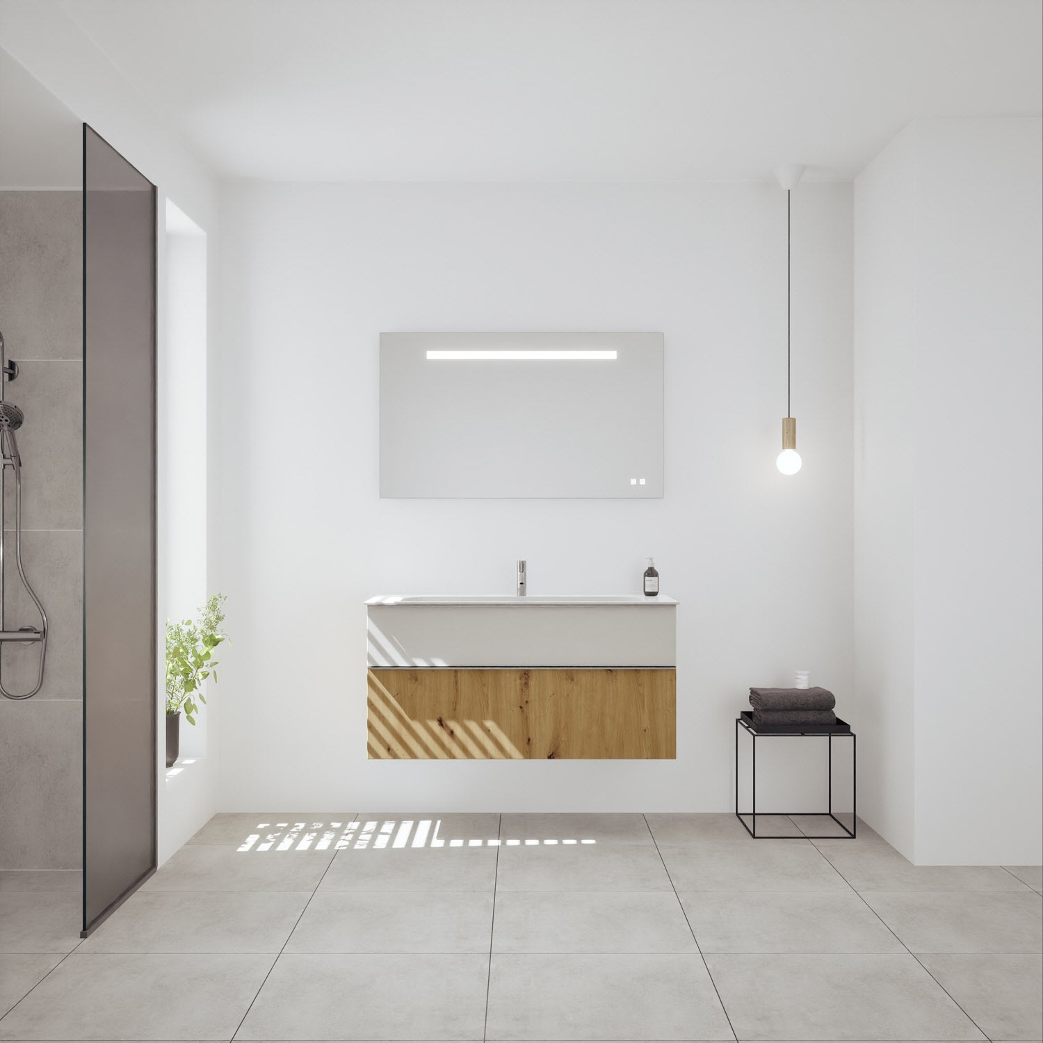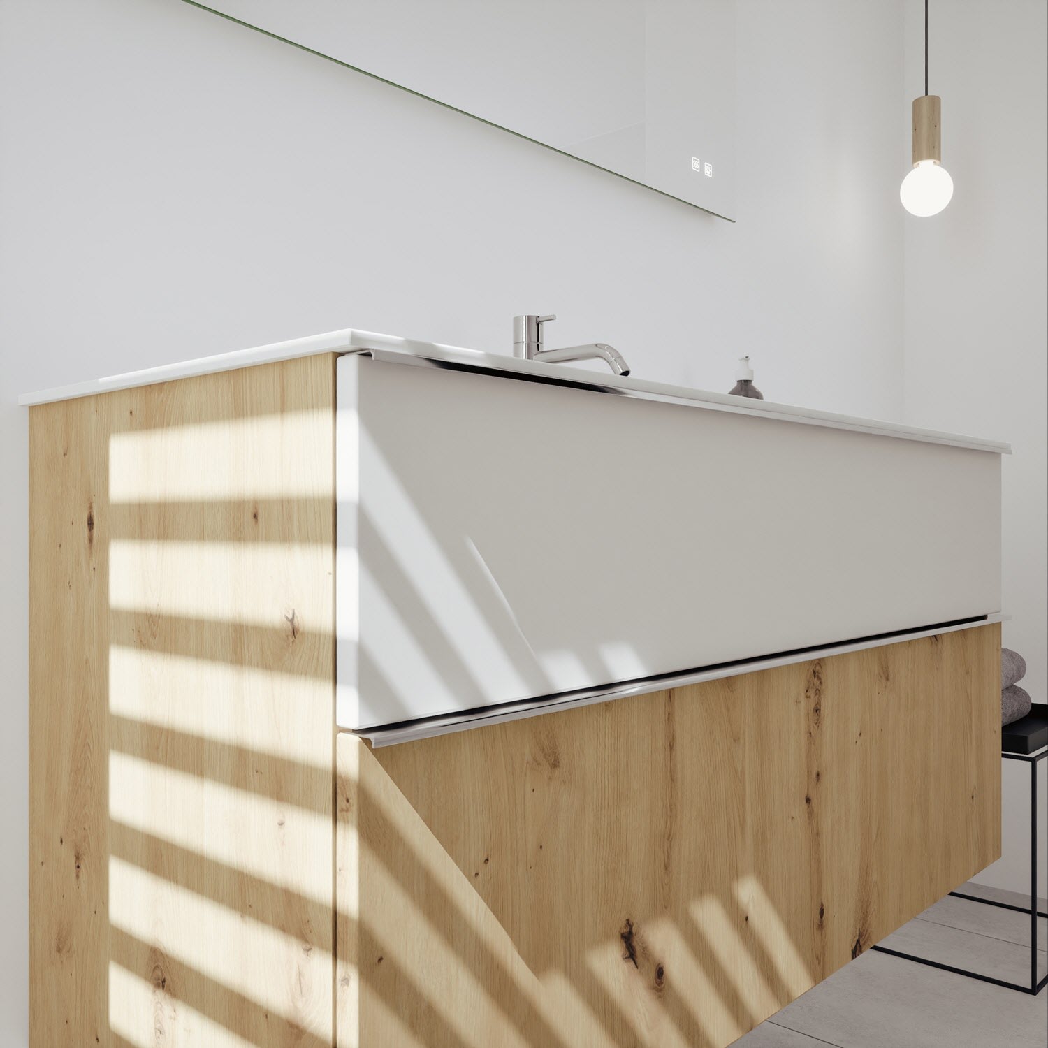 burgbad Fiumo 2.0 Mineralguss-Waschtisch mit Waschtischunterschrank 122 cm, mit Griff G0146