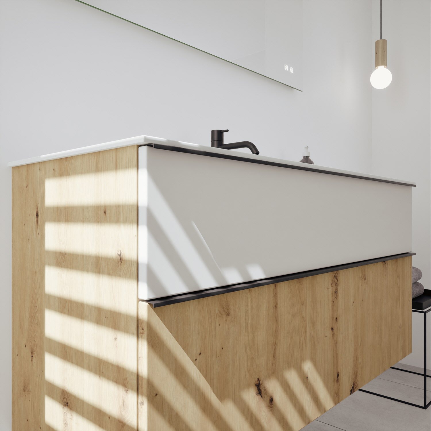 burgbad Fiumo 2.0 Mineralguss-Waschtisch mit Waschtischunterschrank 122 cm, mit Griff G0200
