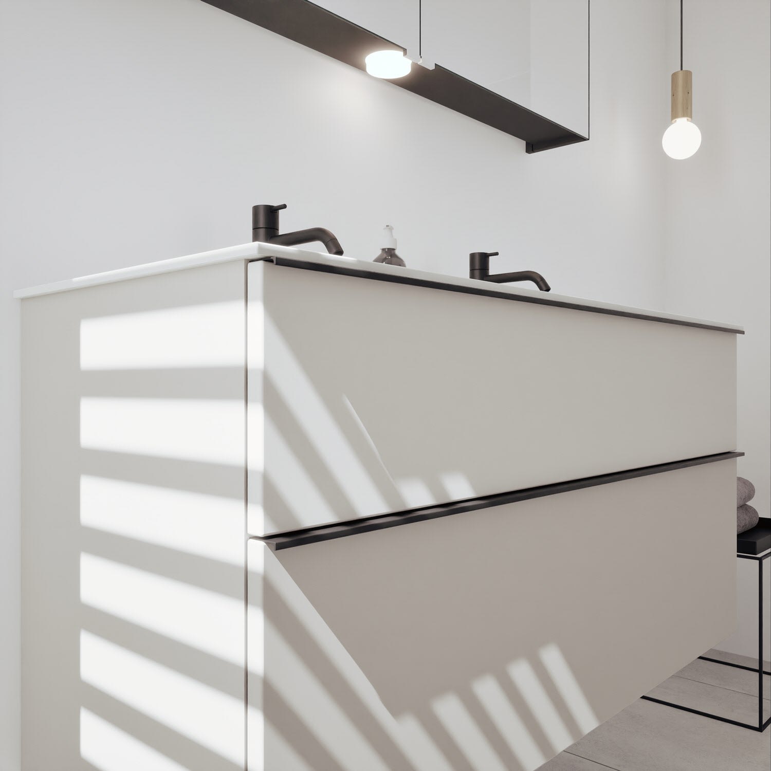 burgbad Fiumo 2.0 Badmöbelset 62 cm mit Waschtisch mit Unterschrank mit Griff G0146 und Spiegelschrank