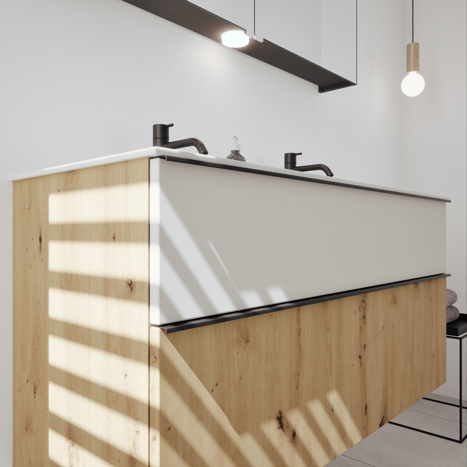 burgbad Fiumo 2.0 Mineralguss-Waschtisch mit Waschtischunterschrank 122 cm, mit Griff G0200