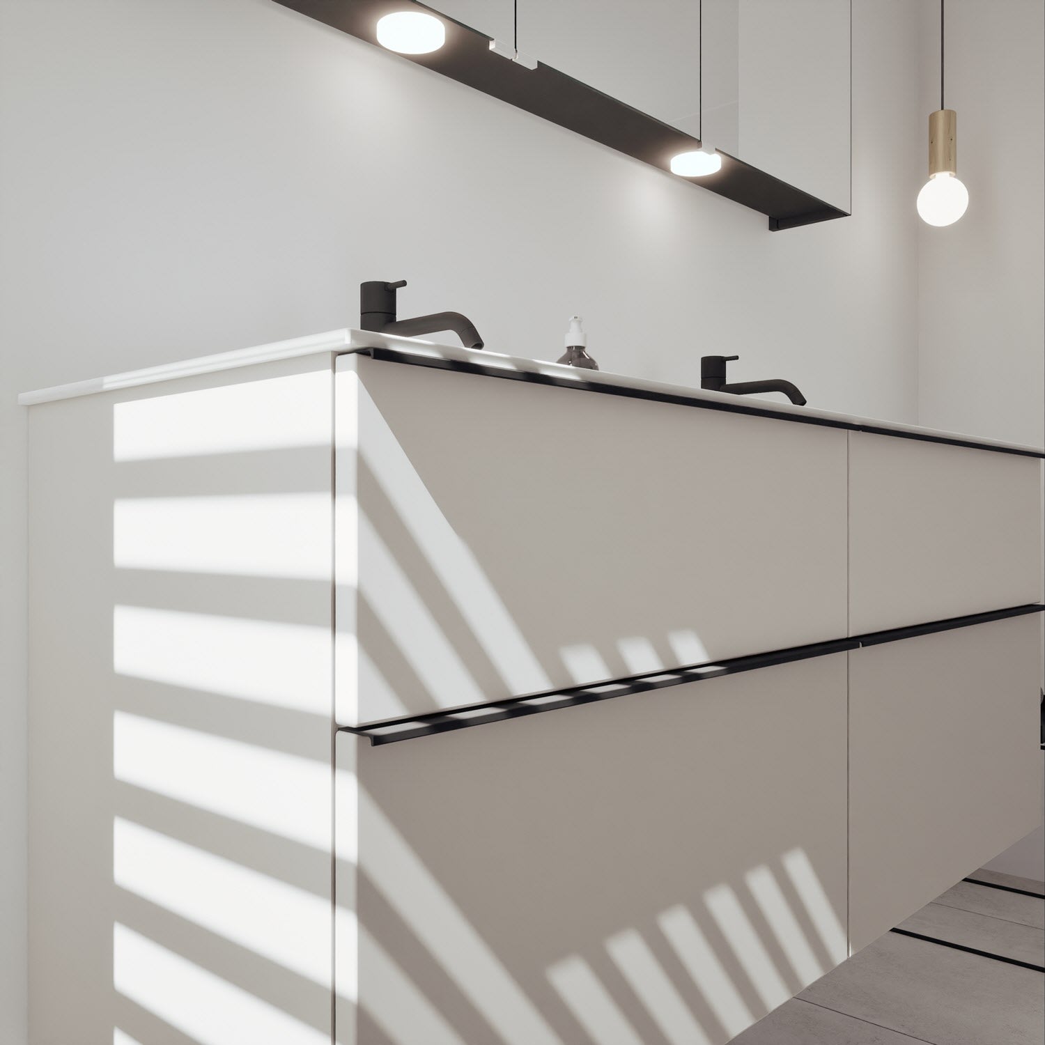 burgbad Fiumo 2.0 Mineralguss-Waschtisch mit Waschtischunterschrank 142 cm, mit Griff G0200