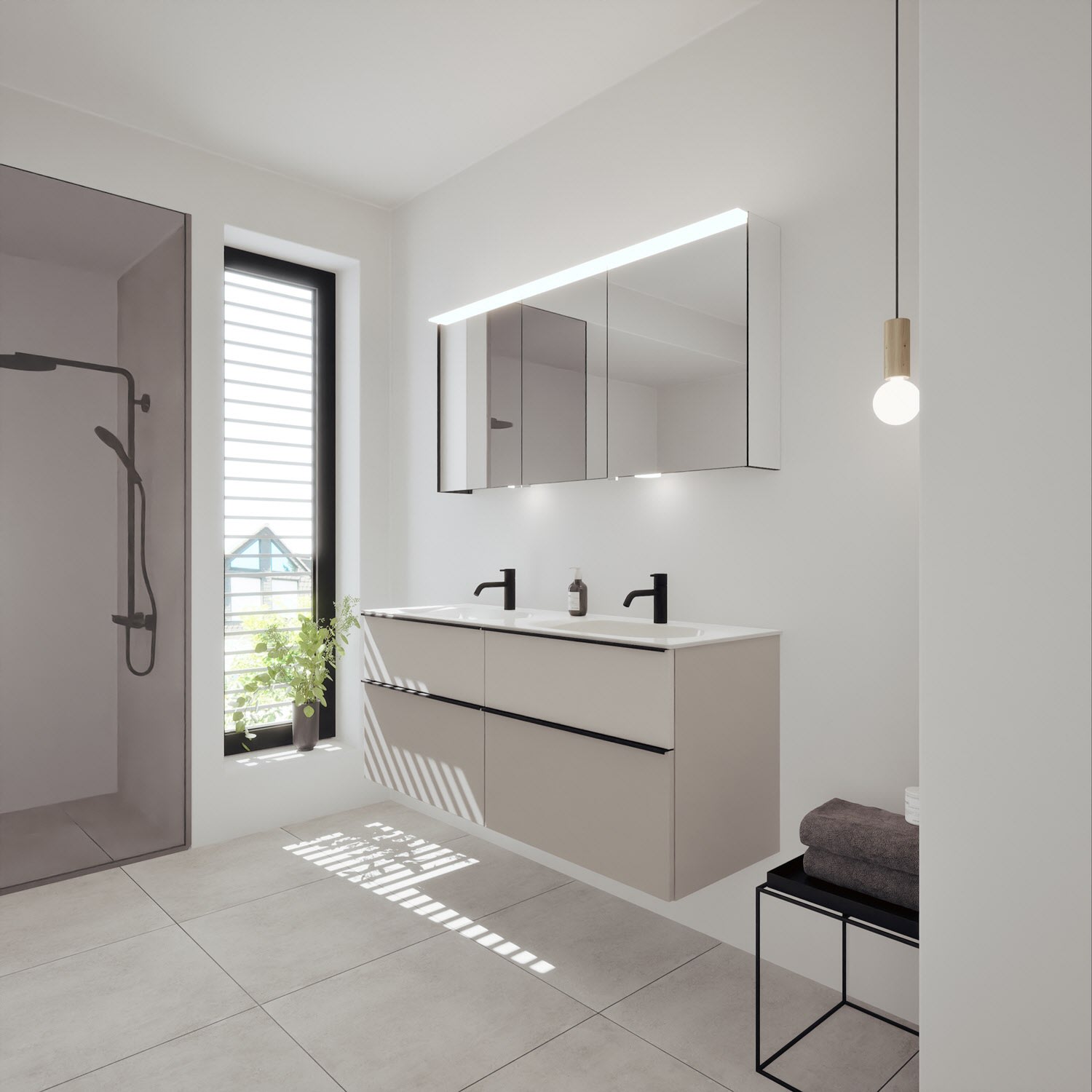 burgbad Fiumo 2.0 Spiegelschrank 140,6 cm mit LED-Aufsatzleuchte und Waschplatzbeleuchtung, 3 Spiegeltüren