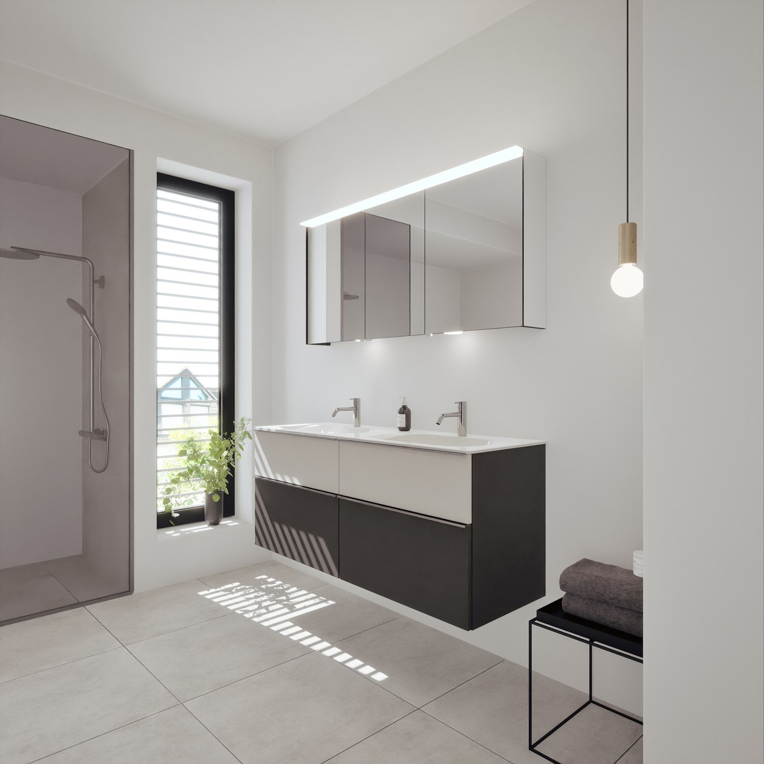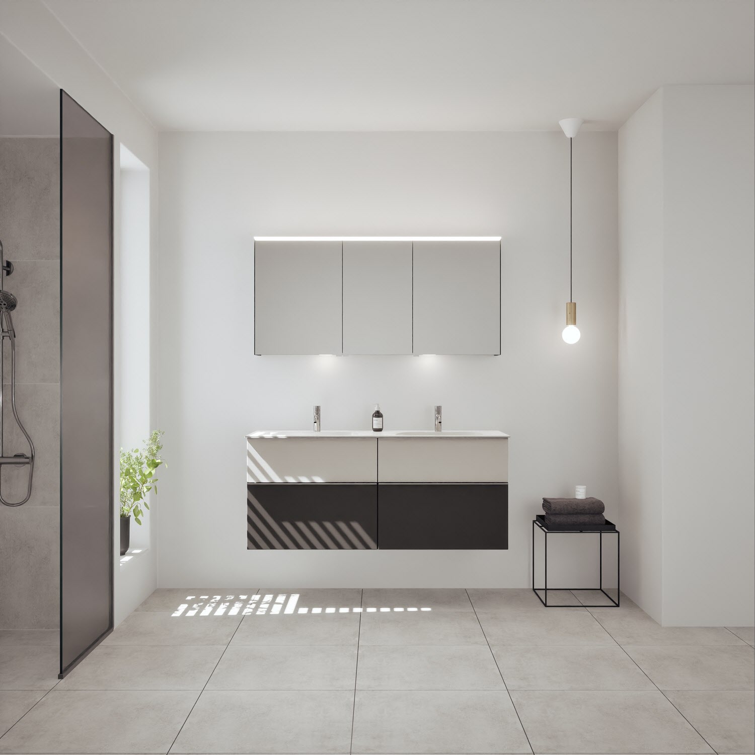 burgbad Fiumo 2.0 Spiegelschrank 140,6 cm mit LED-Aufsatzleuchte und Waschplatzbeleuchtung, 3 Spiegeltüren