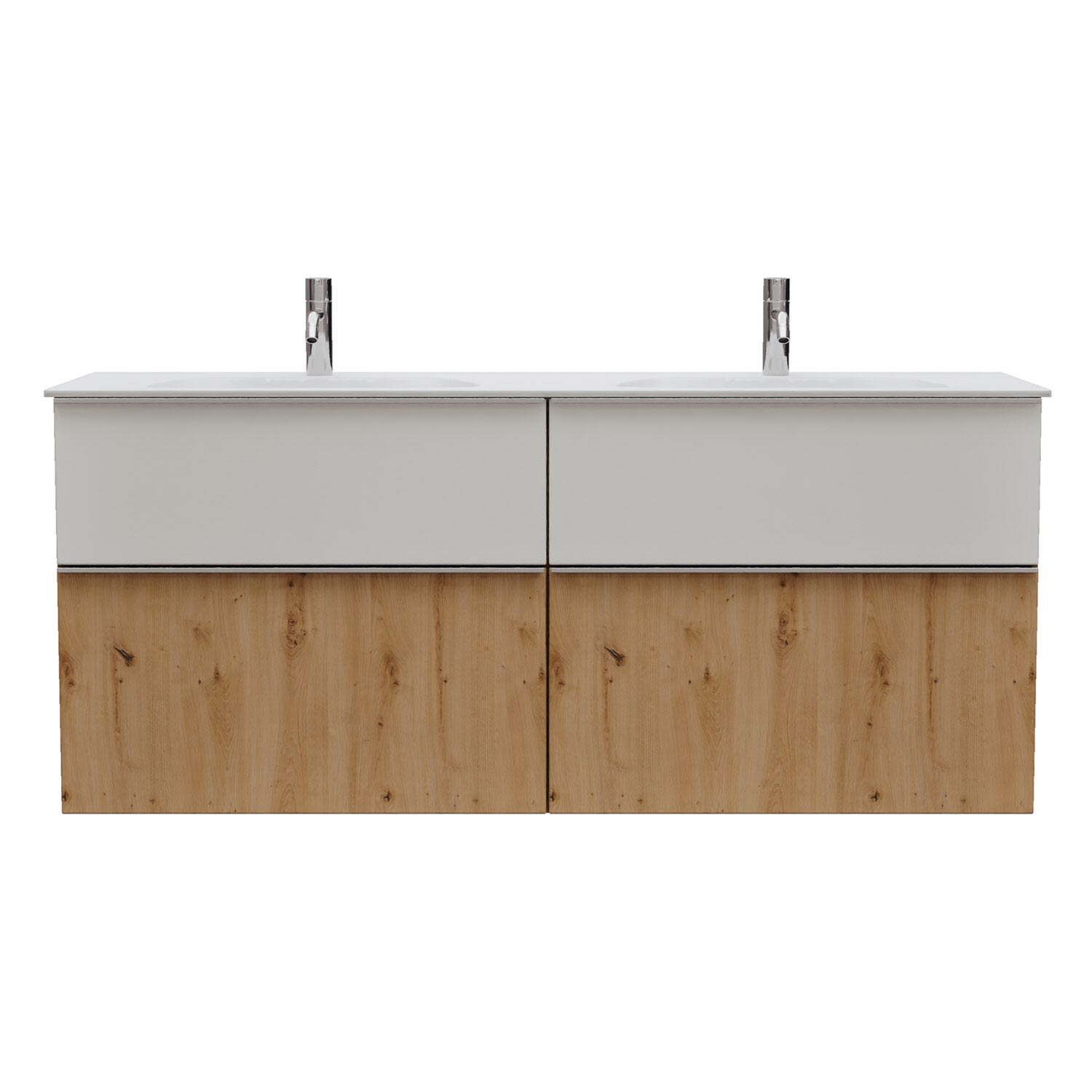 - 2 Schubladen oben, 35 cm tief, mit Siphonausschnitt und Inneneinteilung