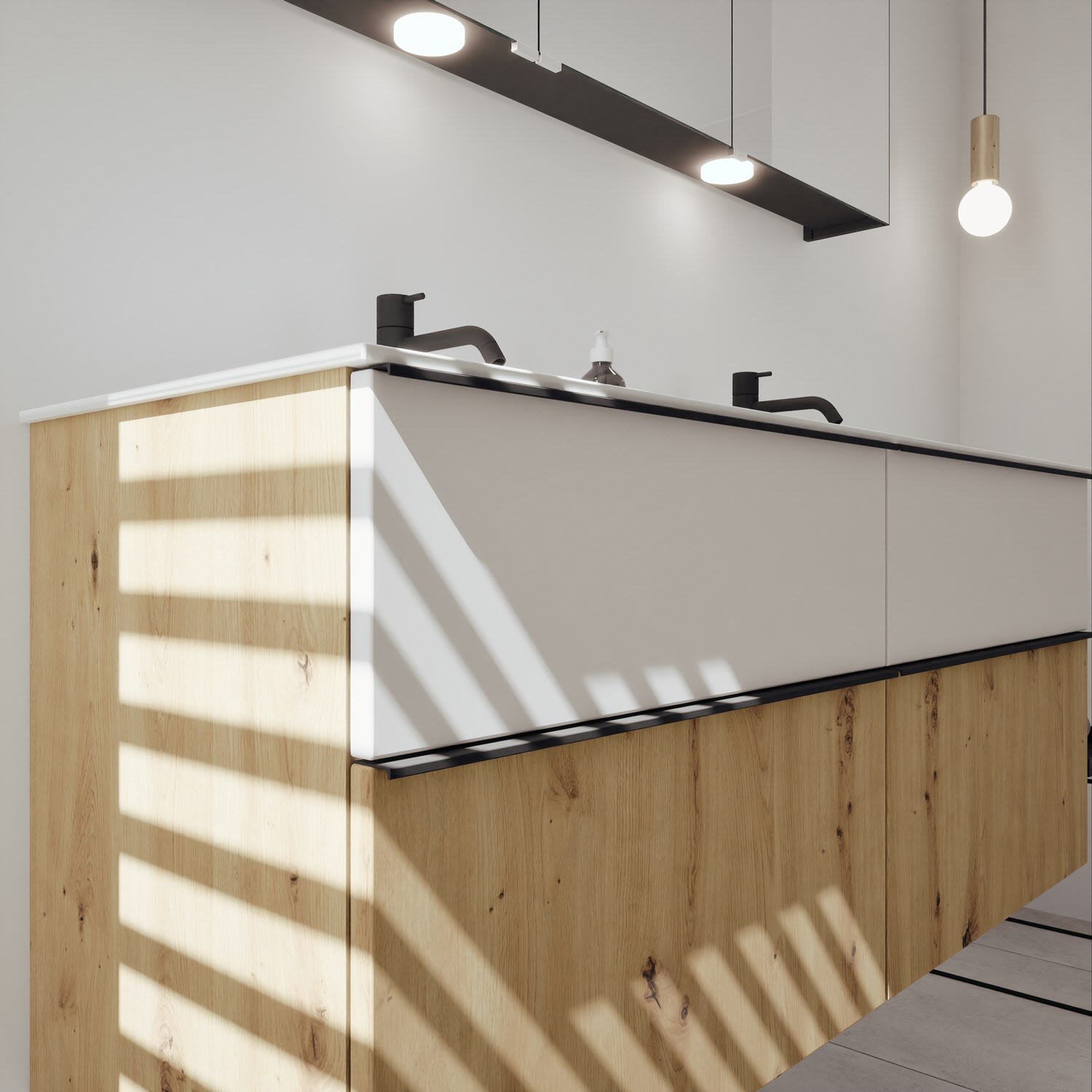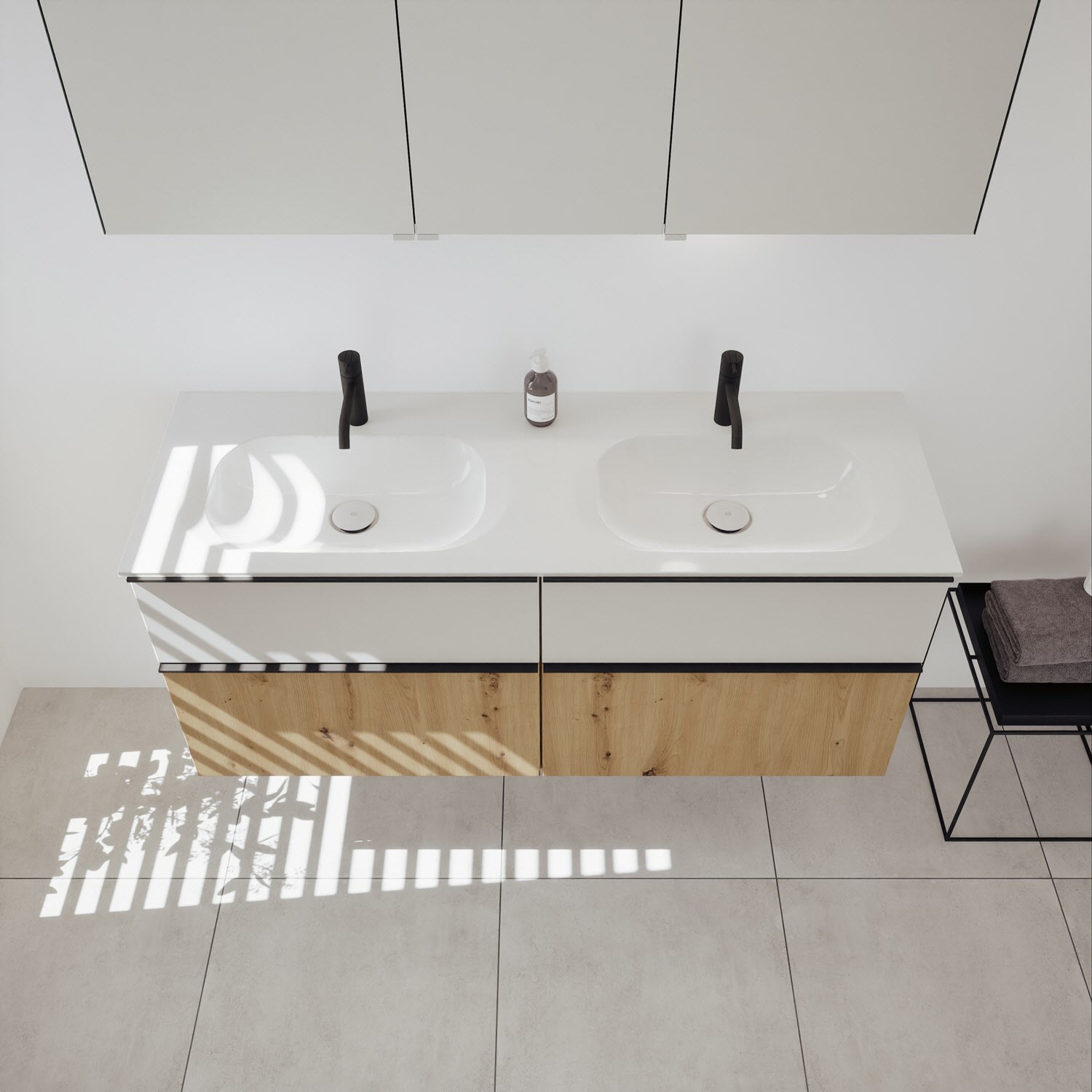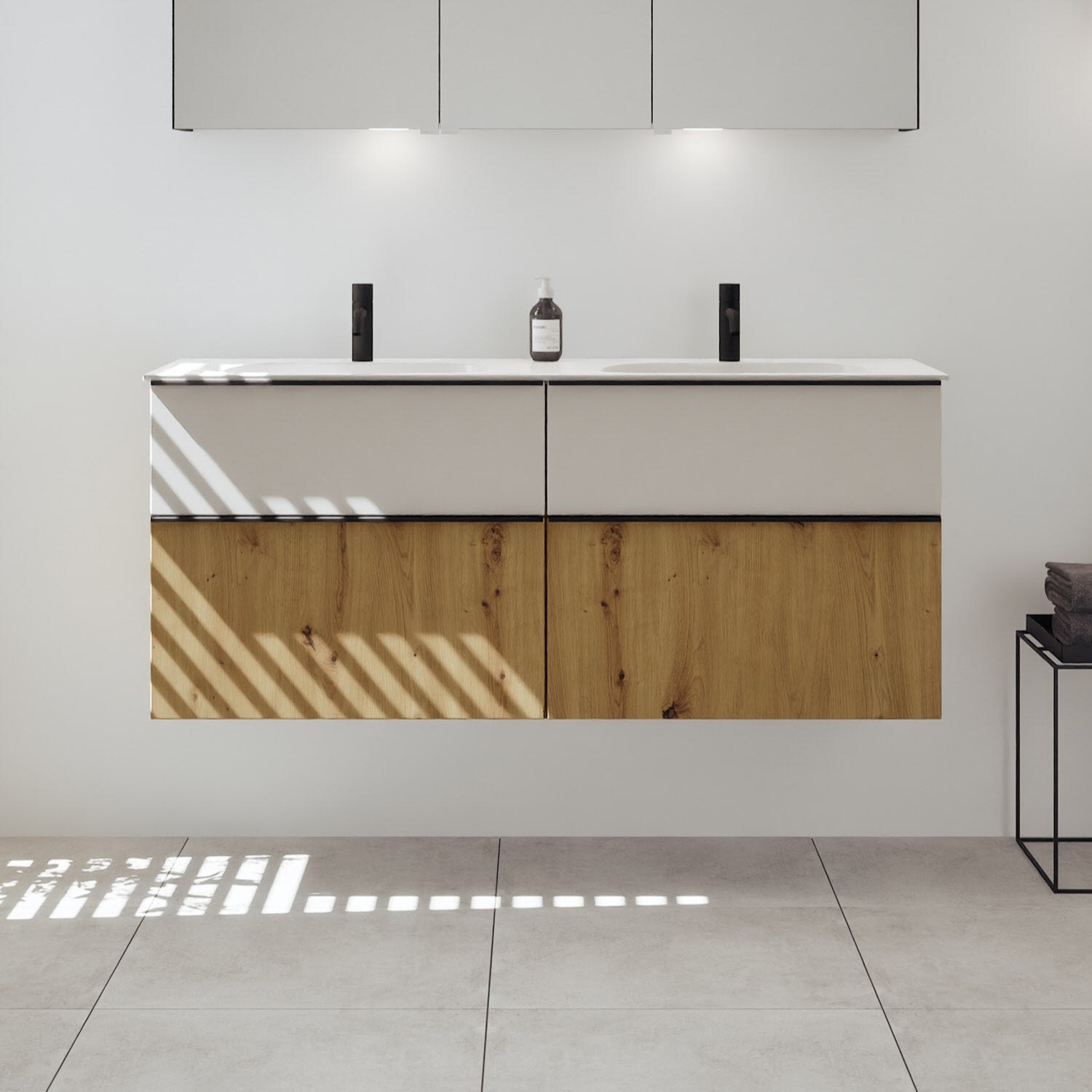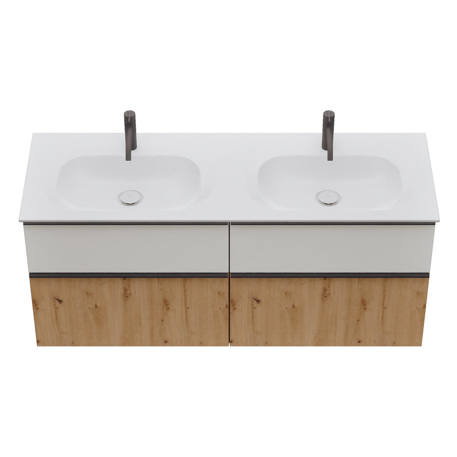 burgbad Fiumo 2.0 Mineralguss-Waschtisch mit Waschtischunterschrank 142 cm, mit Griff G0200