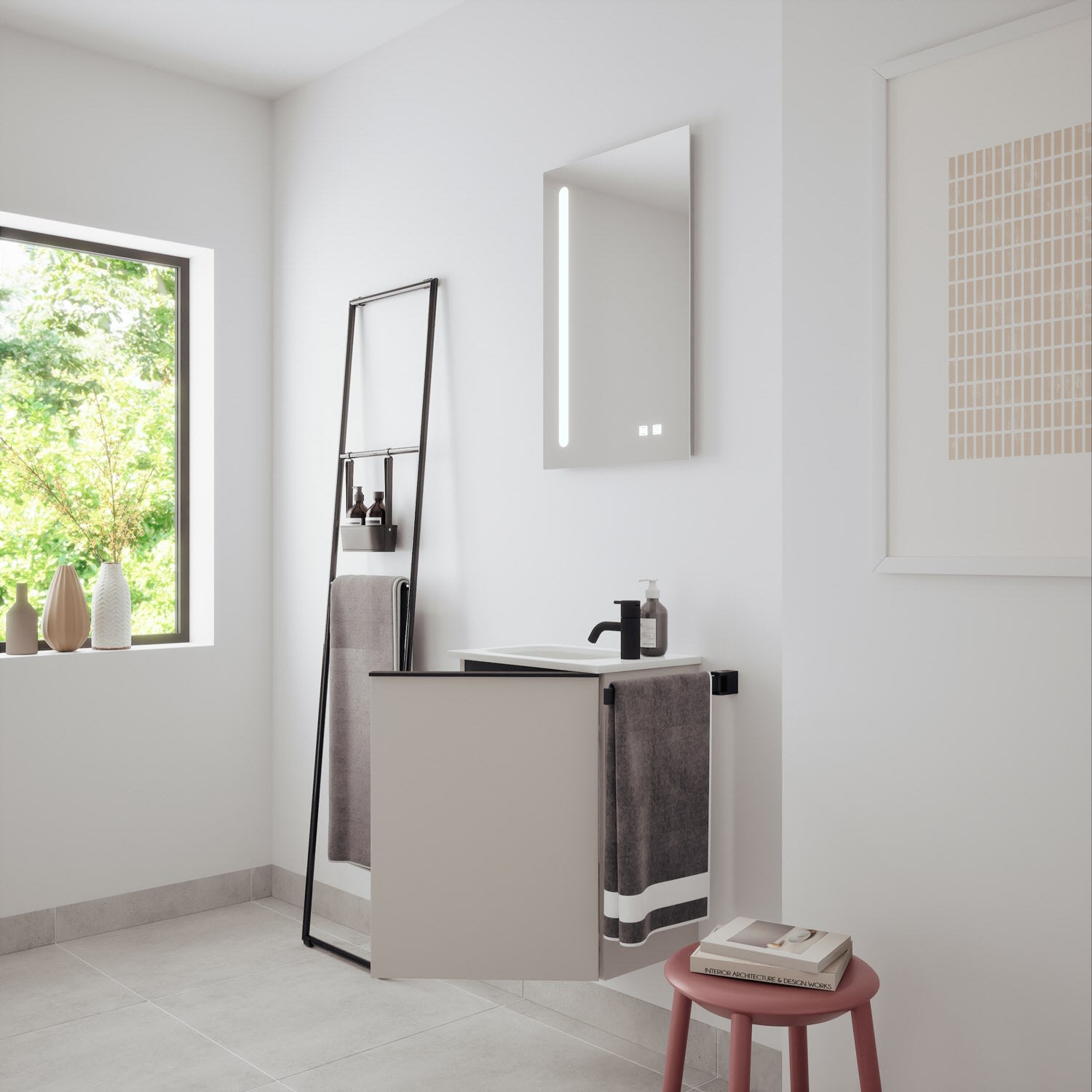 burgbad Fiumo 2.0 Mineralguss-Waschtisch mit Waschtischunterschrank 47 cm, mit Griff G0200