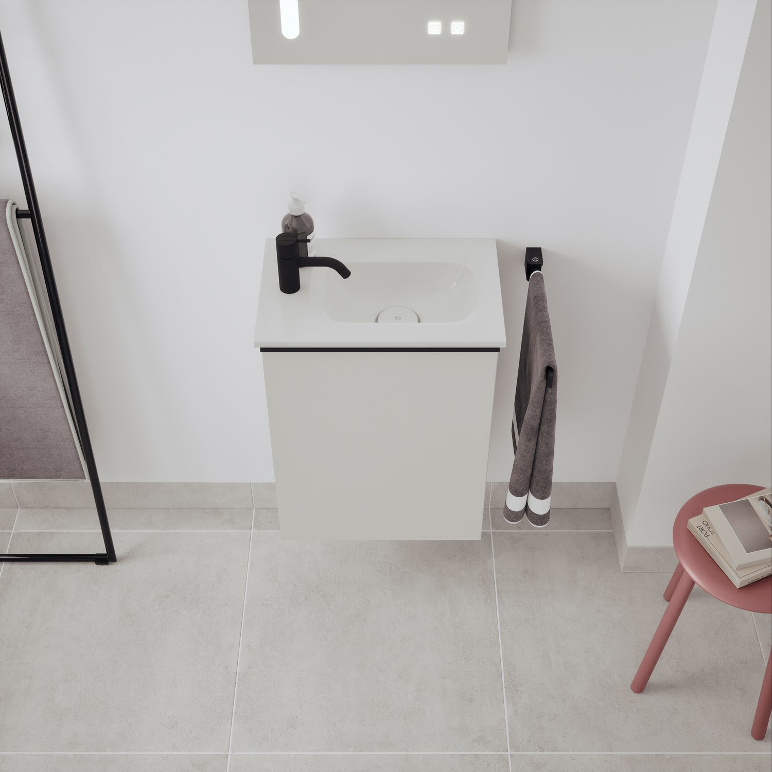 burgbad Fiumo 2.0 Mineralguss-Waschtisch mit Waschtischunterschrank 47 cm, mit Griff G0200