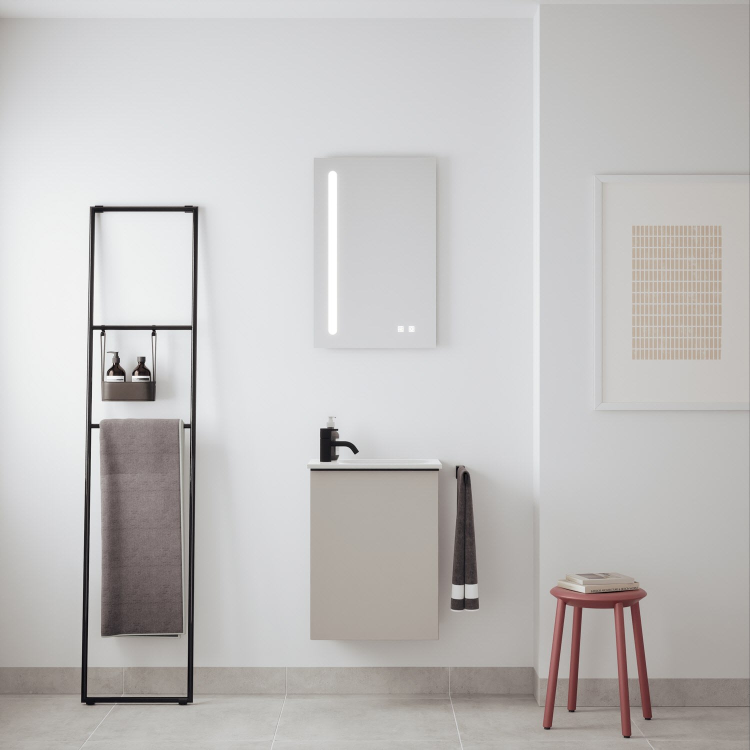 burgbad Fiumo 2.0 Mineralguss-Waschtisch mit Waschtischunterschrank 47 cm, mit Griff G0200