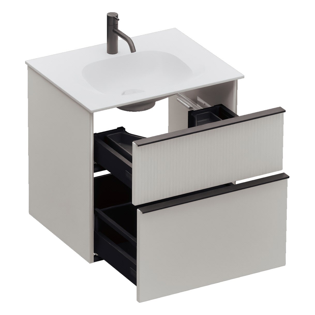 burgbad Fiumo 2.0 Mineralguss-Waschtisch mit Waschtischunterschrank 62 cm, mit Griff G0200