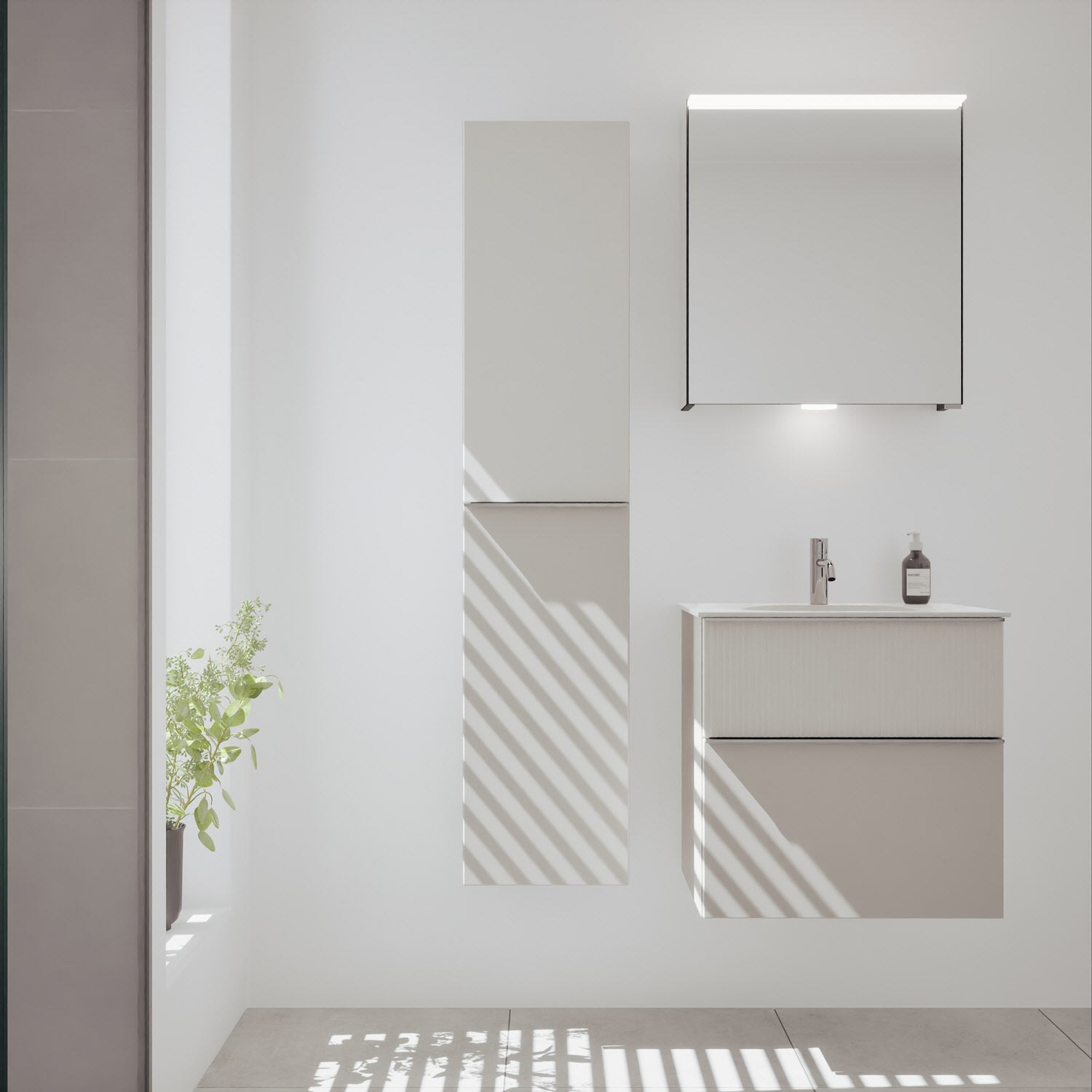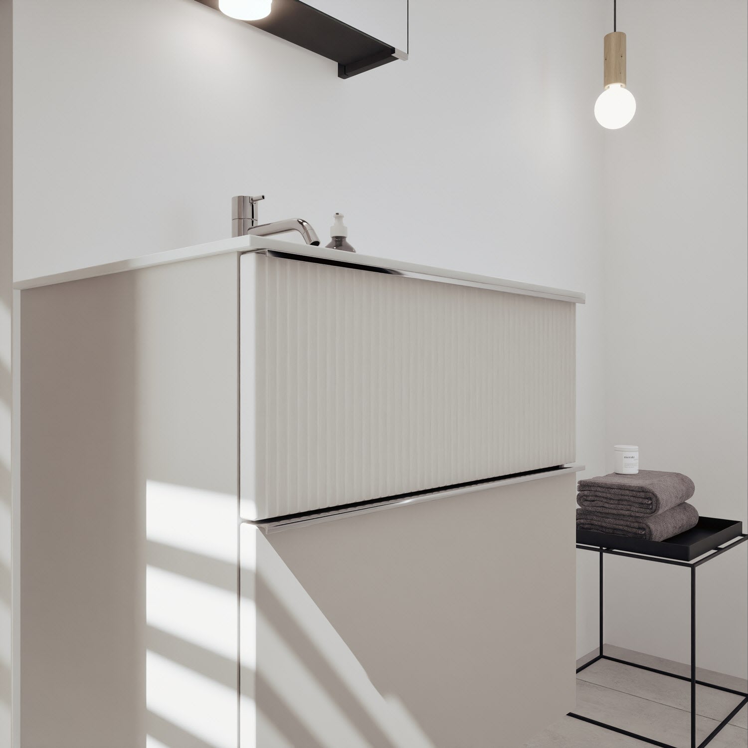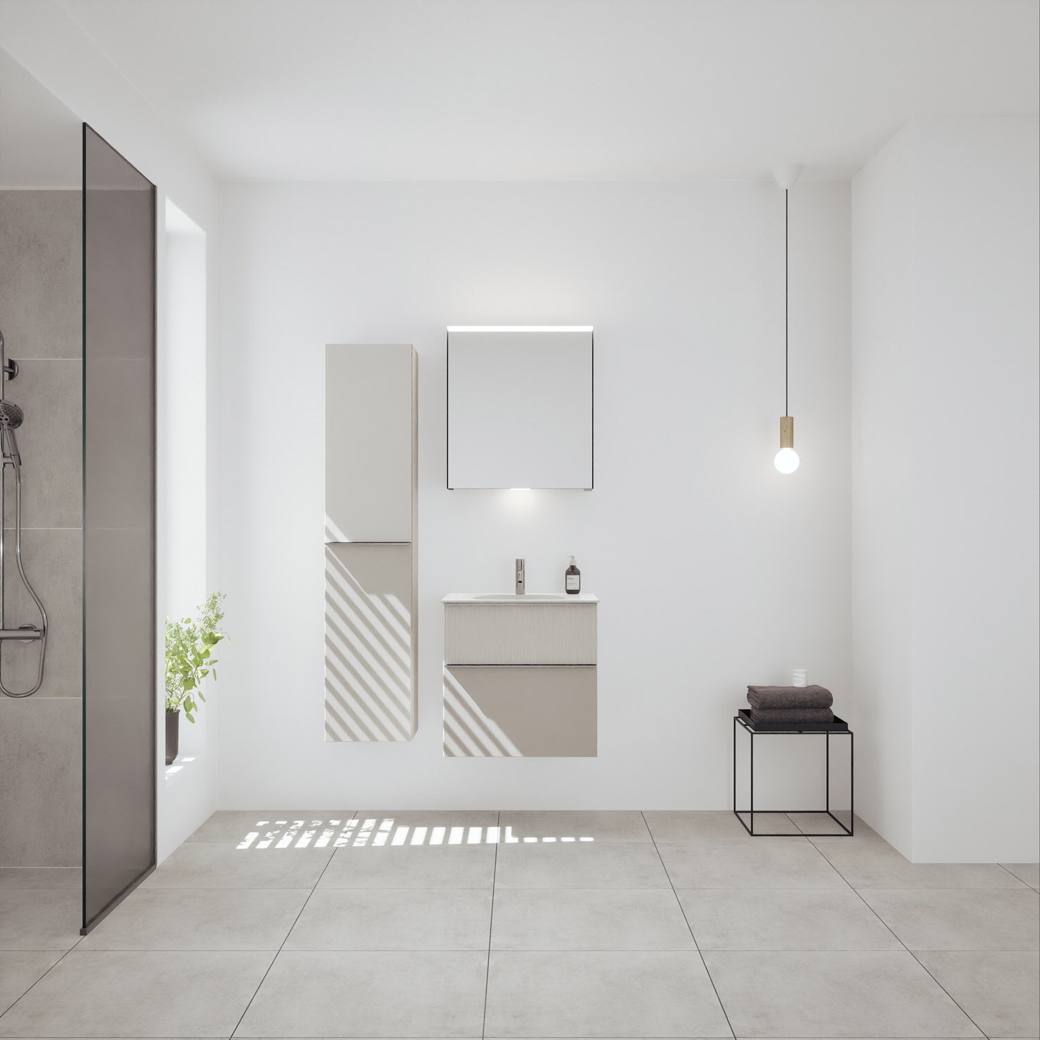 burgbad Fiumo 2.0 Mineralguss-Waschtisch mit Waschtischunterschrank 62 cm, mit Griff G0146