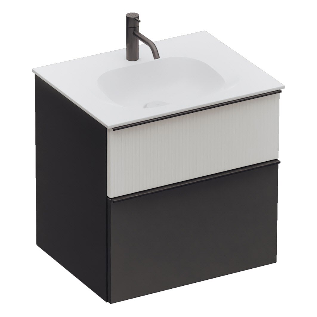 burgbad Fiumo 2.0 Mineralguss-Waschtisch mit Waschtischunterschrank 62 cm, mit Griff G0200