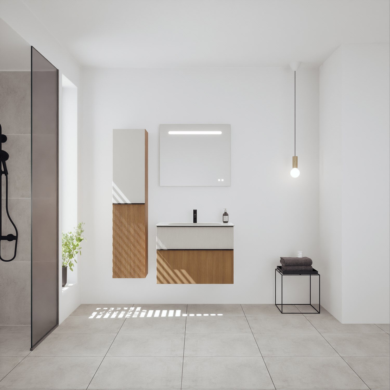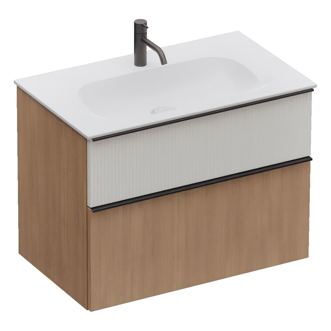 burgbad Fiumo 2.0 Mineralguss-Waschtisch mit Waschtischunterschrank 82 cm, mit Griff G0200