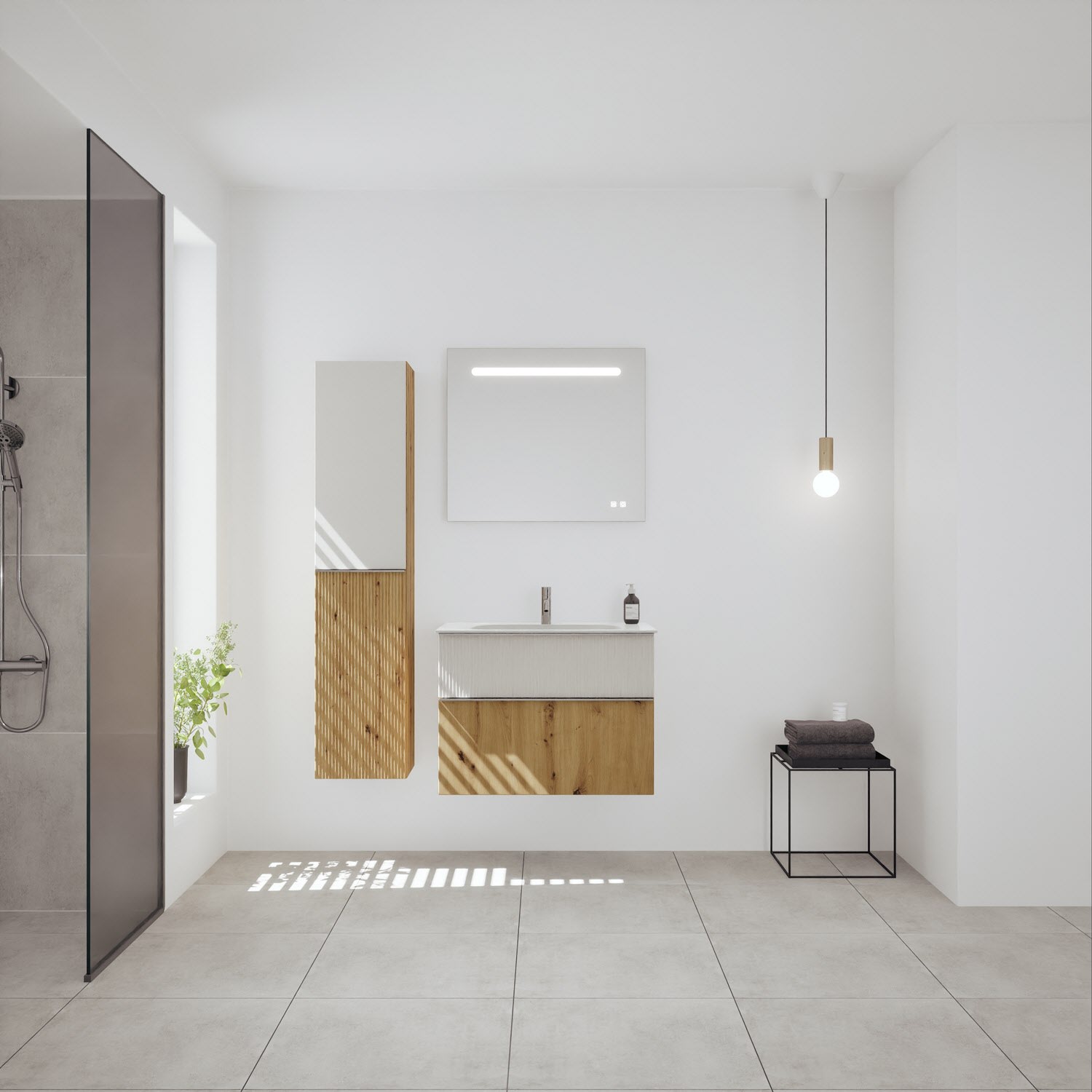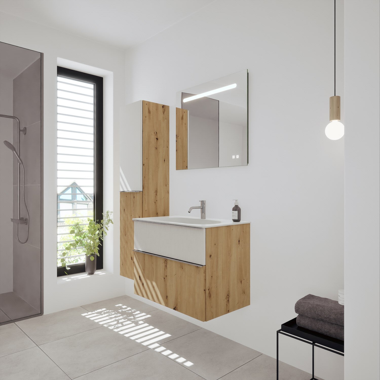 burgbad Fiumo 2.0 Mineralguss-Waschtisch mit Waschtischunterschrank 82 cm, mit Griff G0146