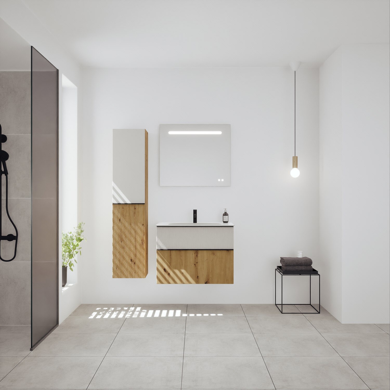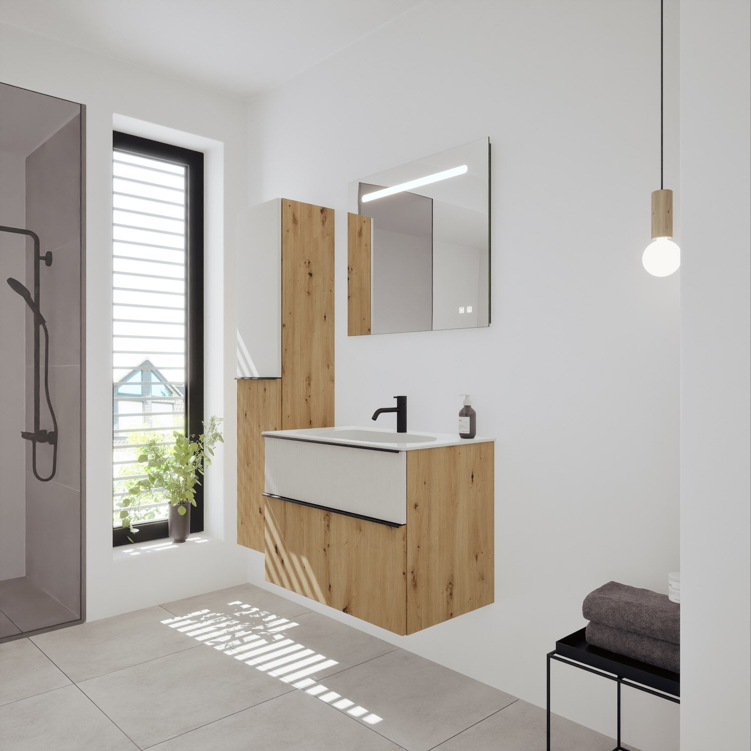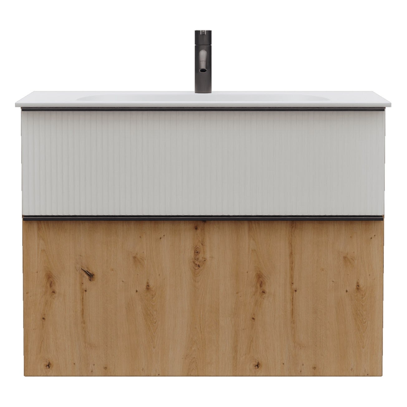 burgbad Fiumo 2.0 Mineralguss-Waschtisch mit Waschtischunterschrank 82 cm, mit Griff G0200