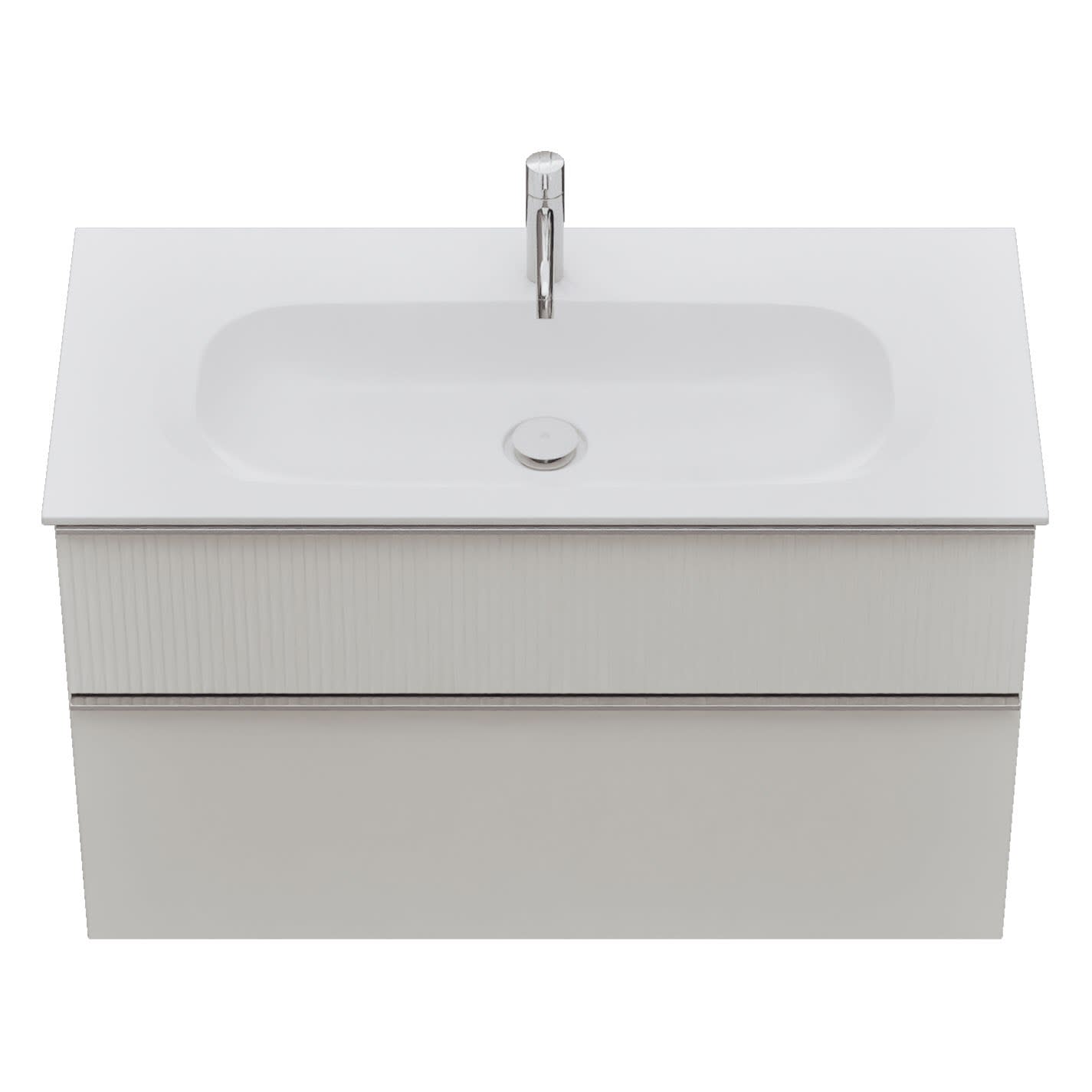 burgbad Fiumo 2.0 Mineralguss-Waschtisch mit Waschtischunterschrank 102 cm, mit Griff G0146
