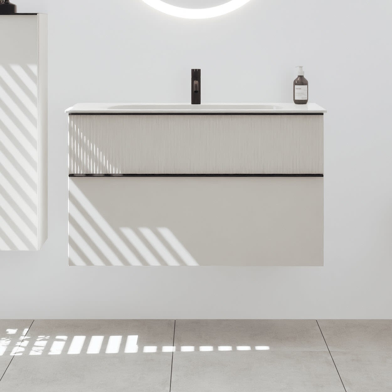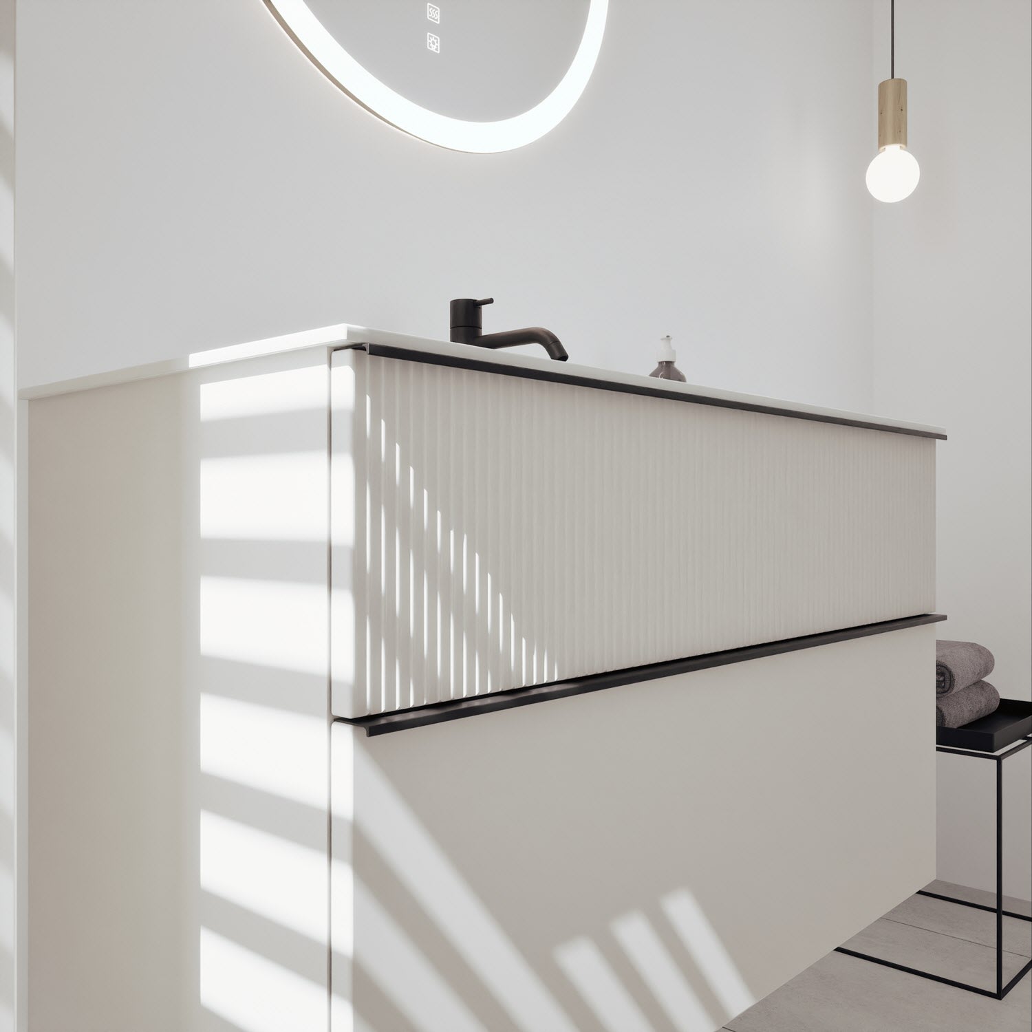 burgbad Fiumo 2.0 Mineralguss-Waschtisch mit Waschtischunterschrank 102 cm, mit Griff G0200