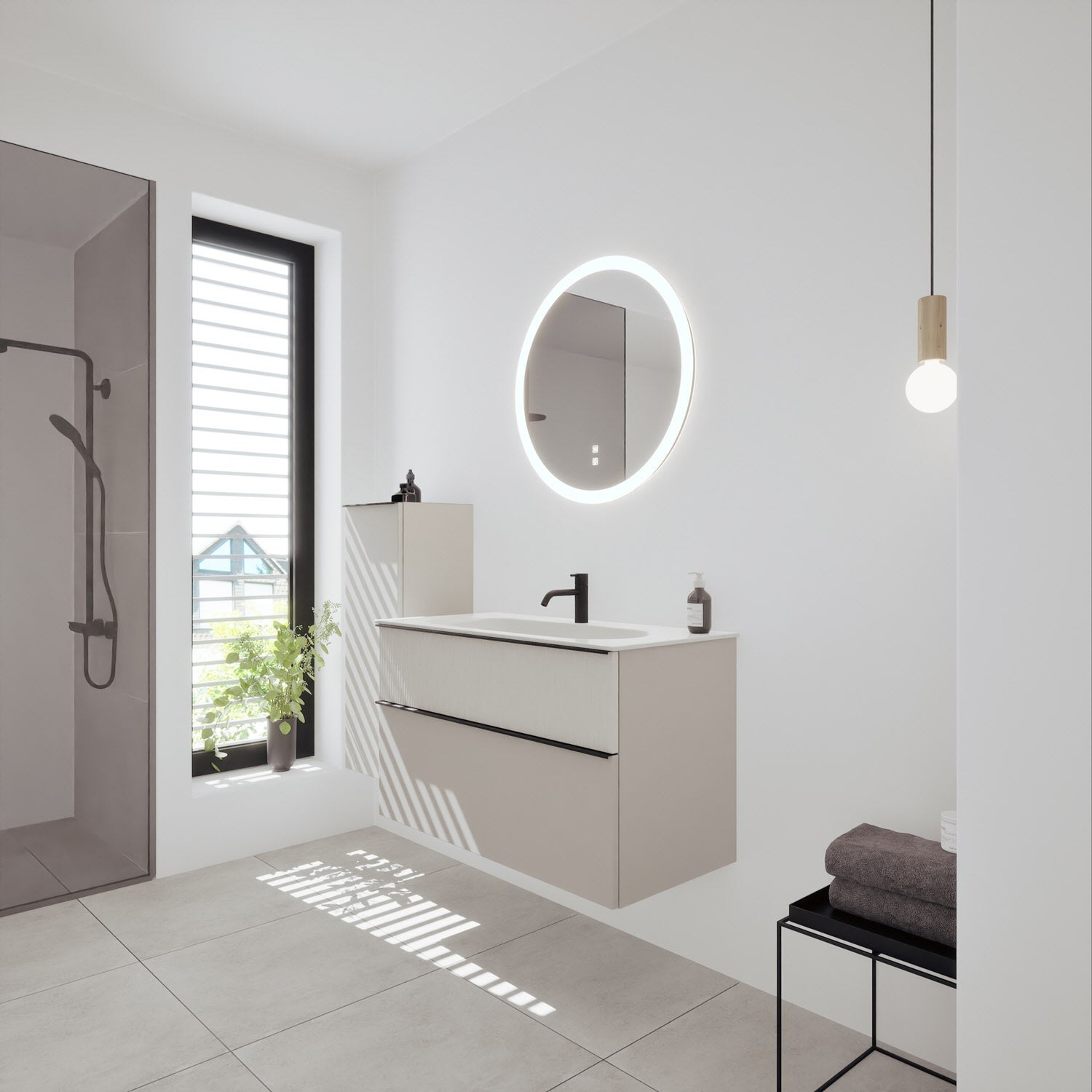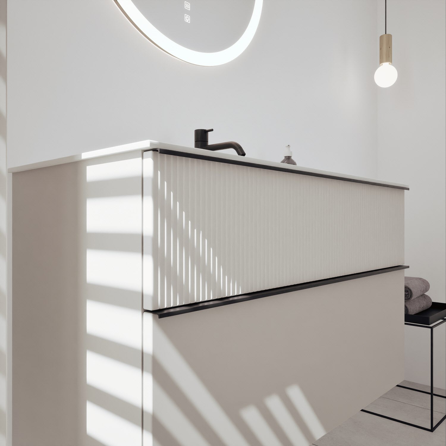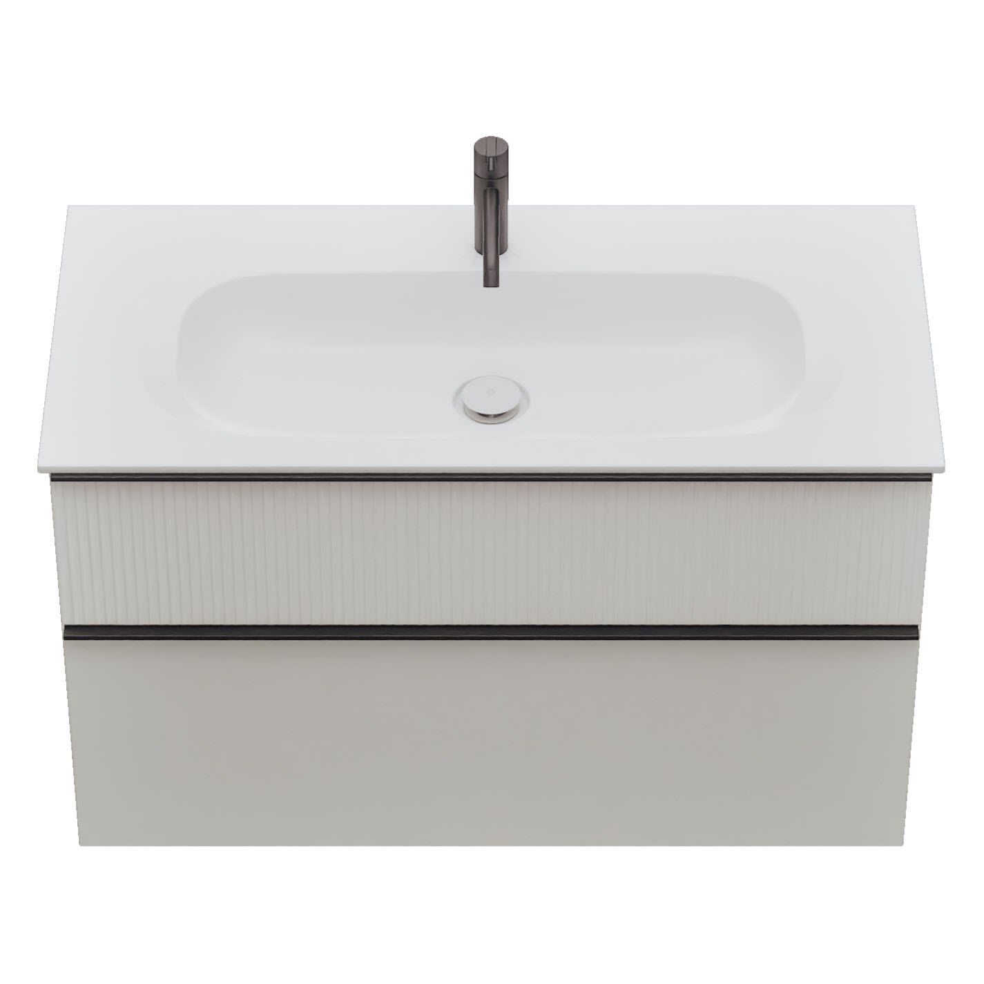 burgbad Fiumo 2.0 Mineralguss-Waschtisch mit Waschtischunterschrank 102 cm, mit Griff G0200