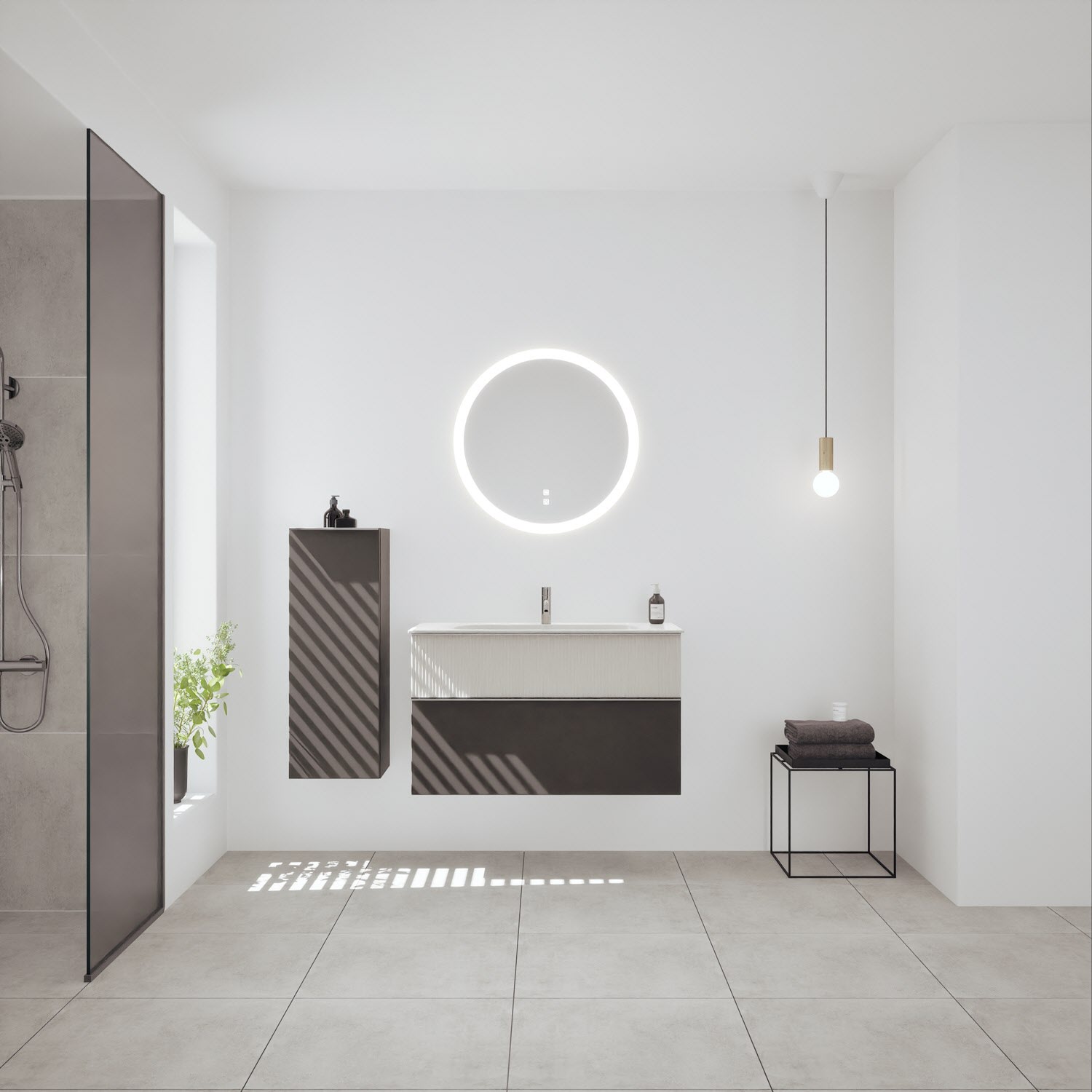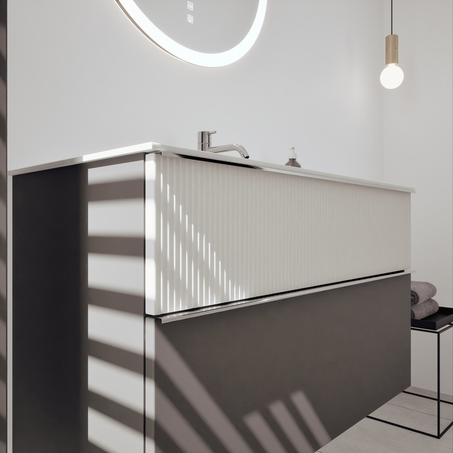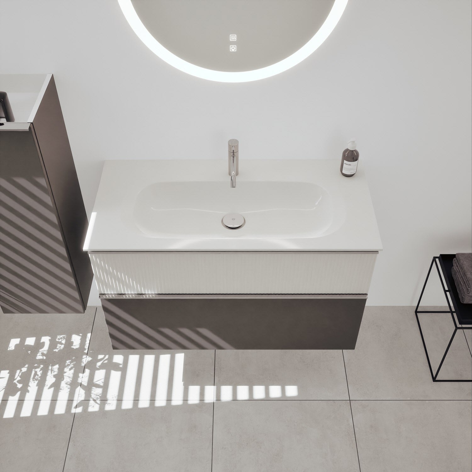 burgbad Fiumo 2.0 Mineralguss-Waschtisch mit Waschtischunterschrank 102 cm, mit Griff G0146