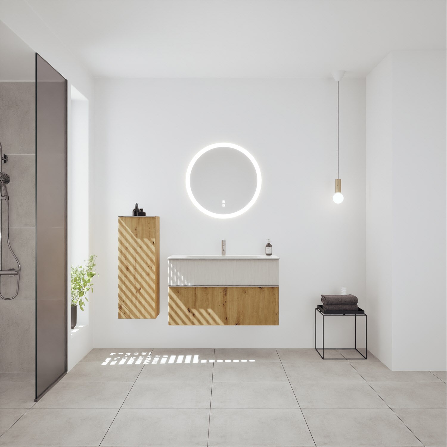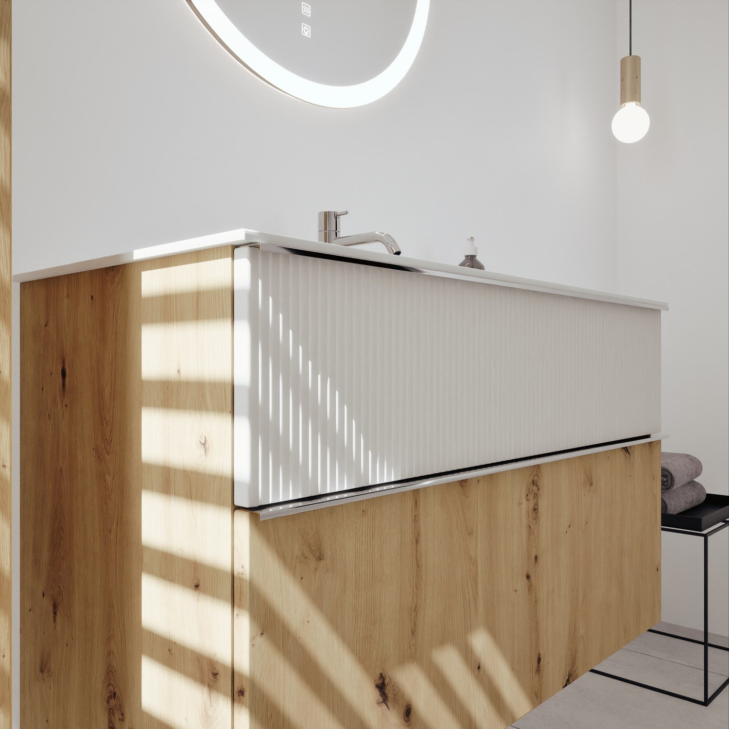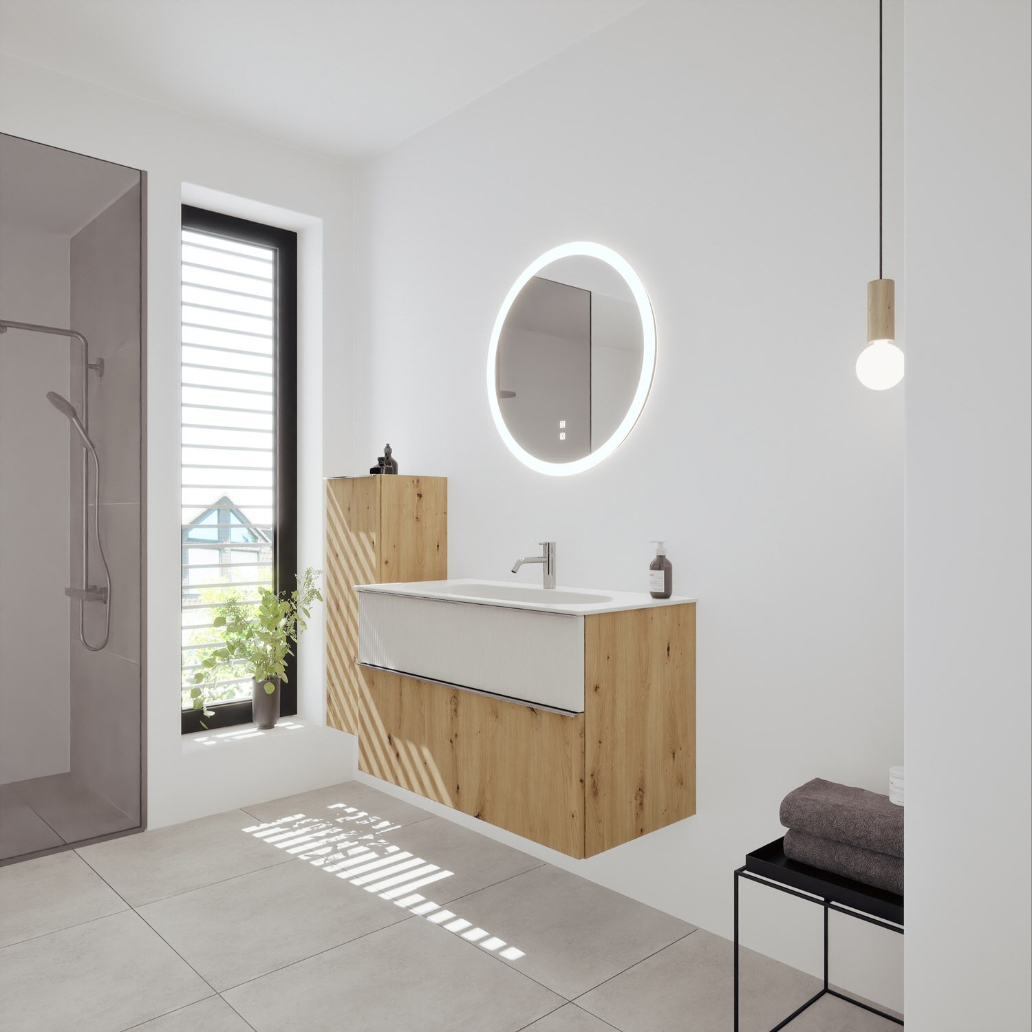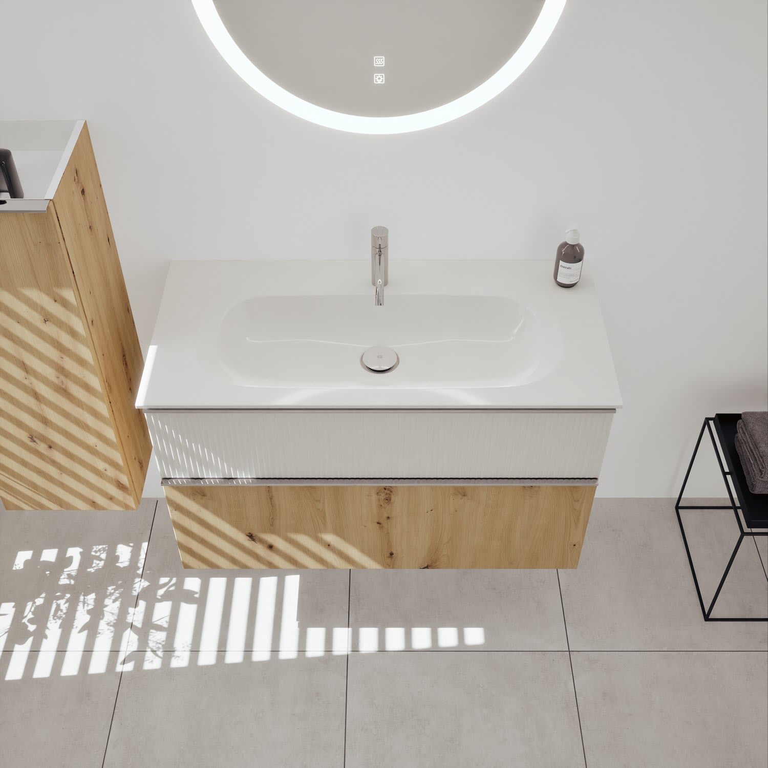 burgbad Fiumo 2.0 Mineralguss-Waschtisch mit Waschtischunterschrank 102 cm, mit Griff G0146