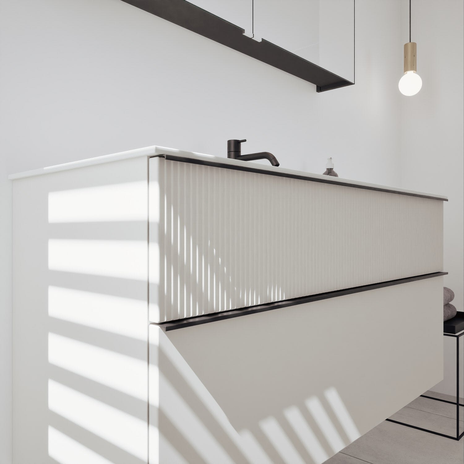 burgbad Fiumo 2.0 Mineralguss-Waschtisch mit Waschtischunterschrank 122 cm, mit Griff G0200