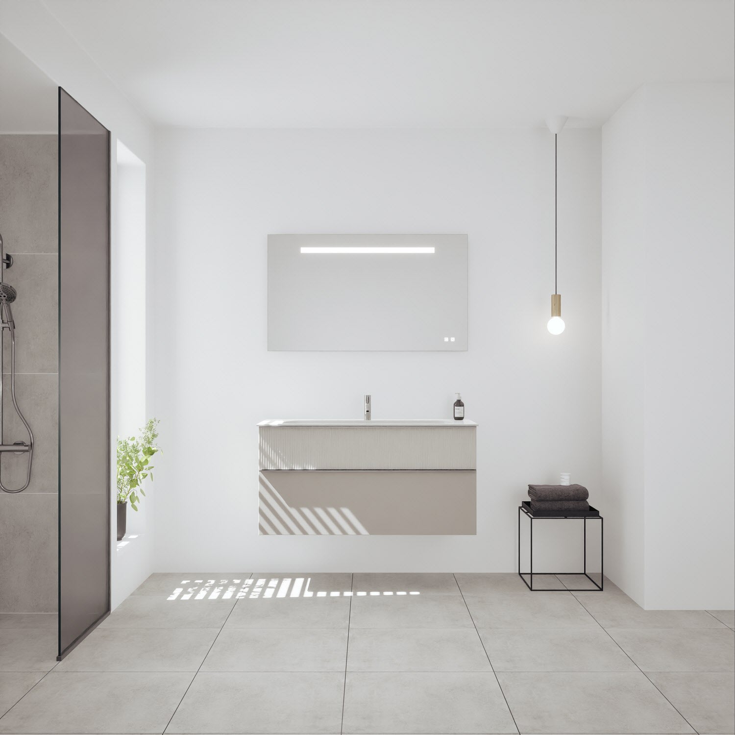 burgbad Fiumo 2.0 Badmöbelset 142 cm mit Waschtisch mit Unterschrank mit Griff G0200 und Spiegelschrank