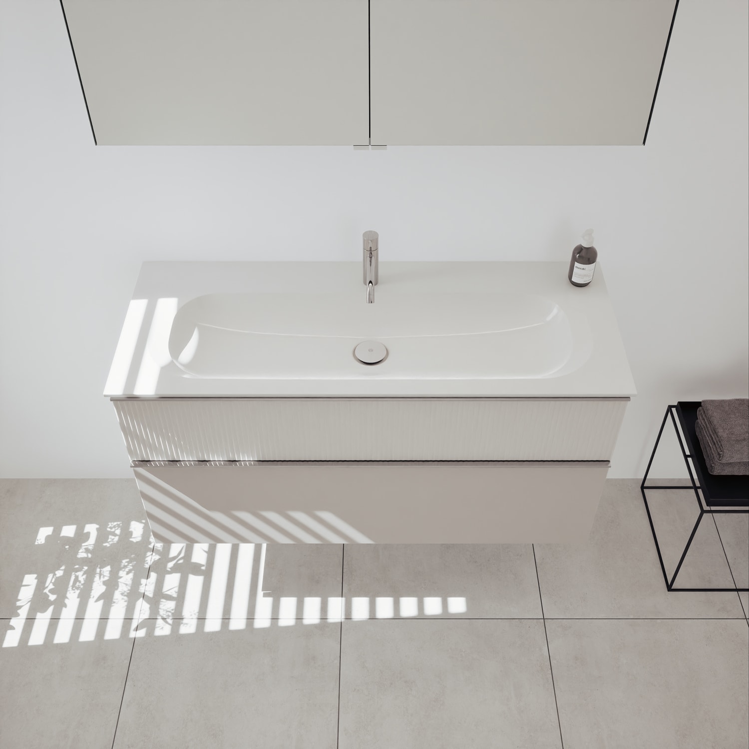 burgbad Fiumo 2.0 Badmöbelset 62 cm mit Waschtisch mit Unterschrank mit Griff G0146 und Spiegelschrank