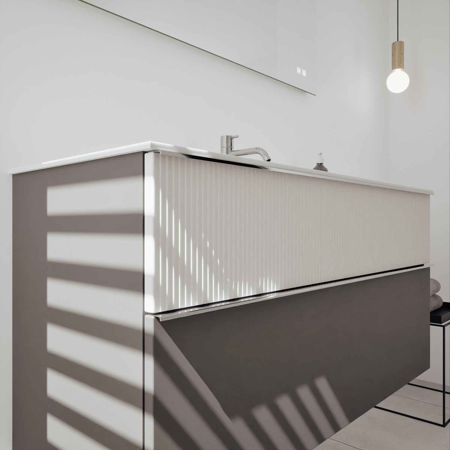 burgbad Fiumo 2.0 Mineralguss-Waschtisch mit Waschtischunterschrank 122 cm, mit Griff G0146